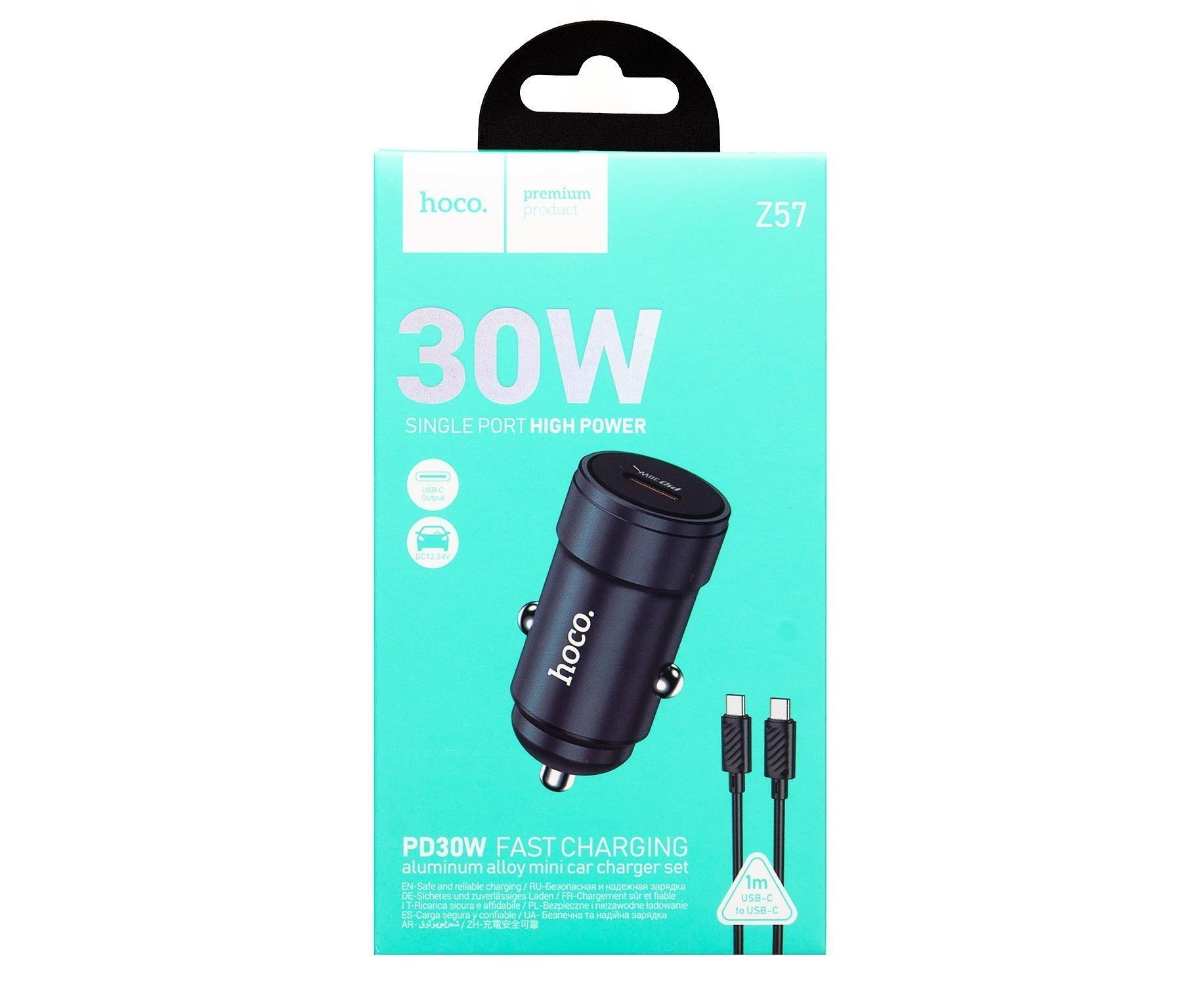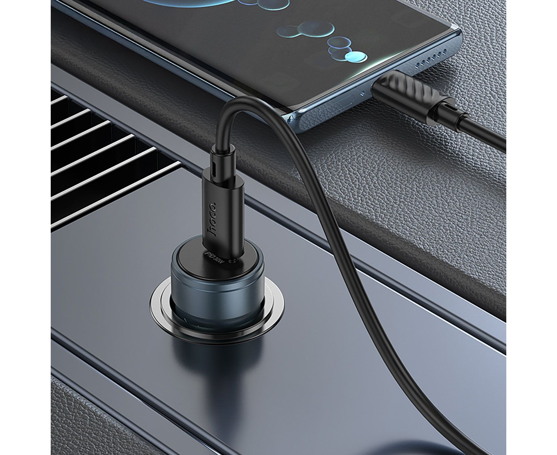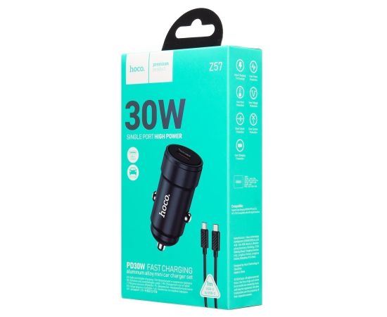 Адаптер Автомобильный с кабелем Hoco Z57 Glorious PD30W (Type-C/Type-C) (metal gray) (236194)