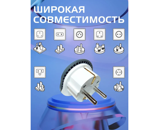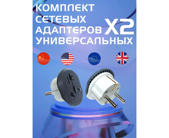 Для вилок: US - Type A, EU - Type C, UK - Type G, Australia - Type I, Switzerland - Type J, Italian - Type L.
