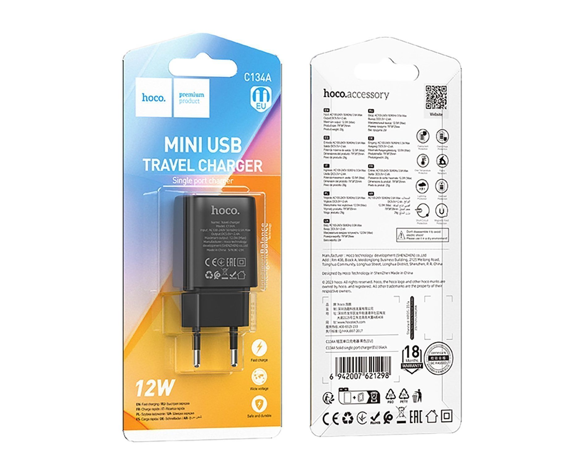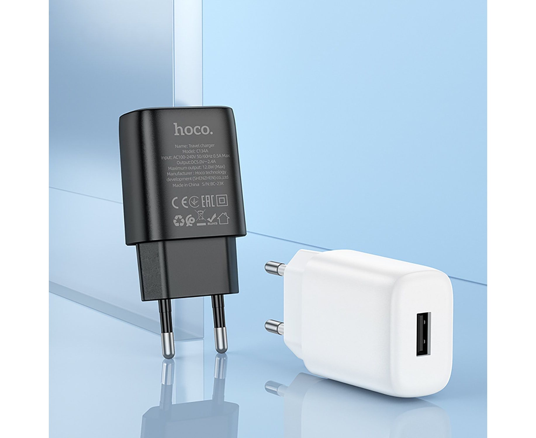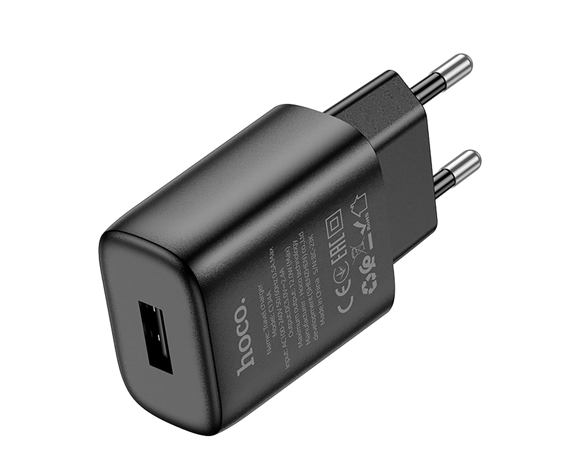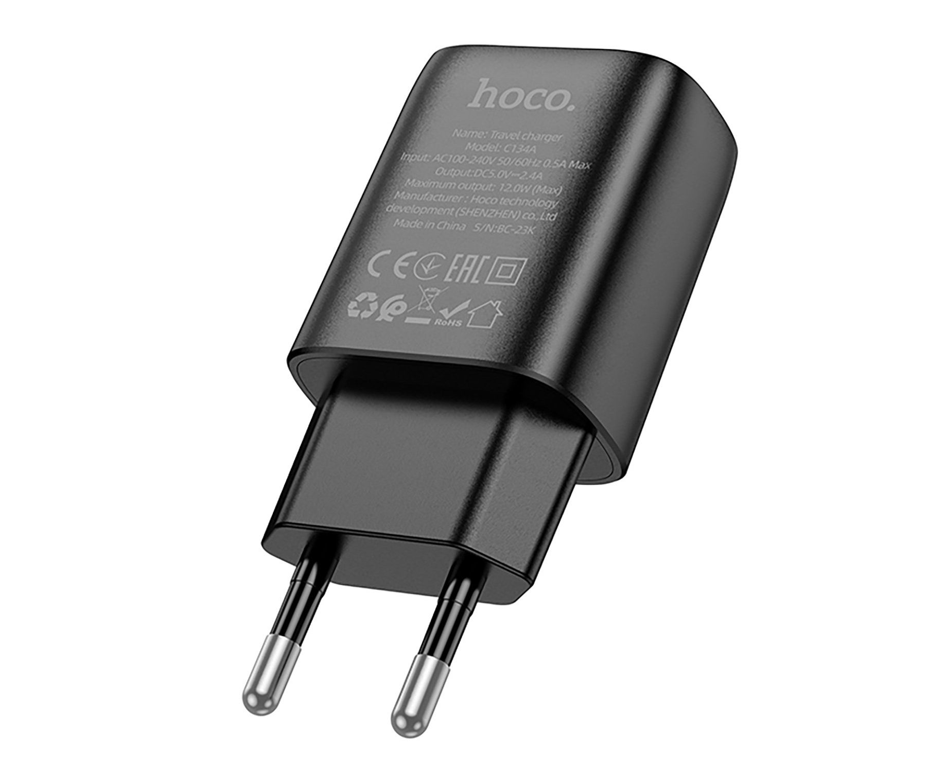Адаптер Сетевой Hoco C134A Solid USB 2,4A/12W (black) (240257)