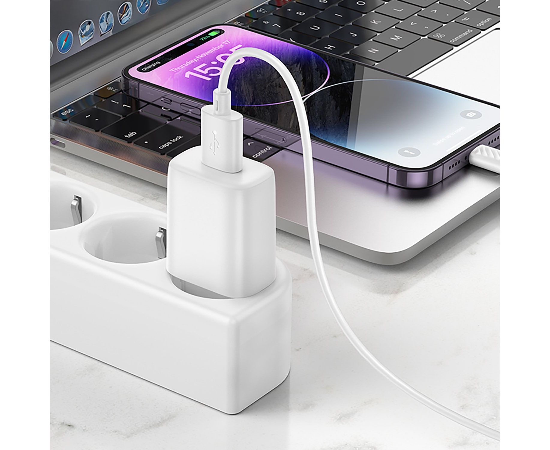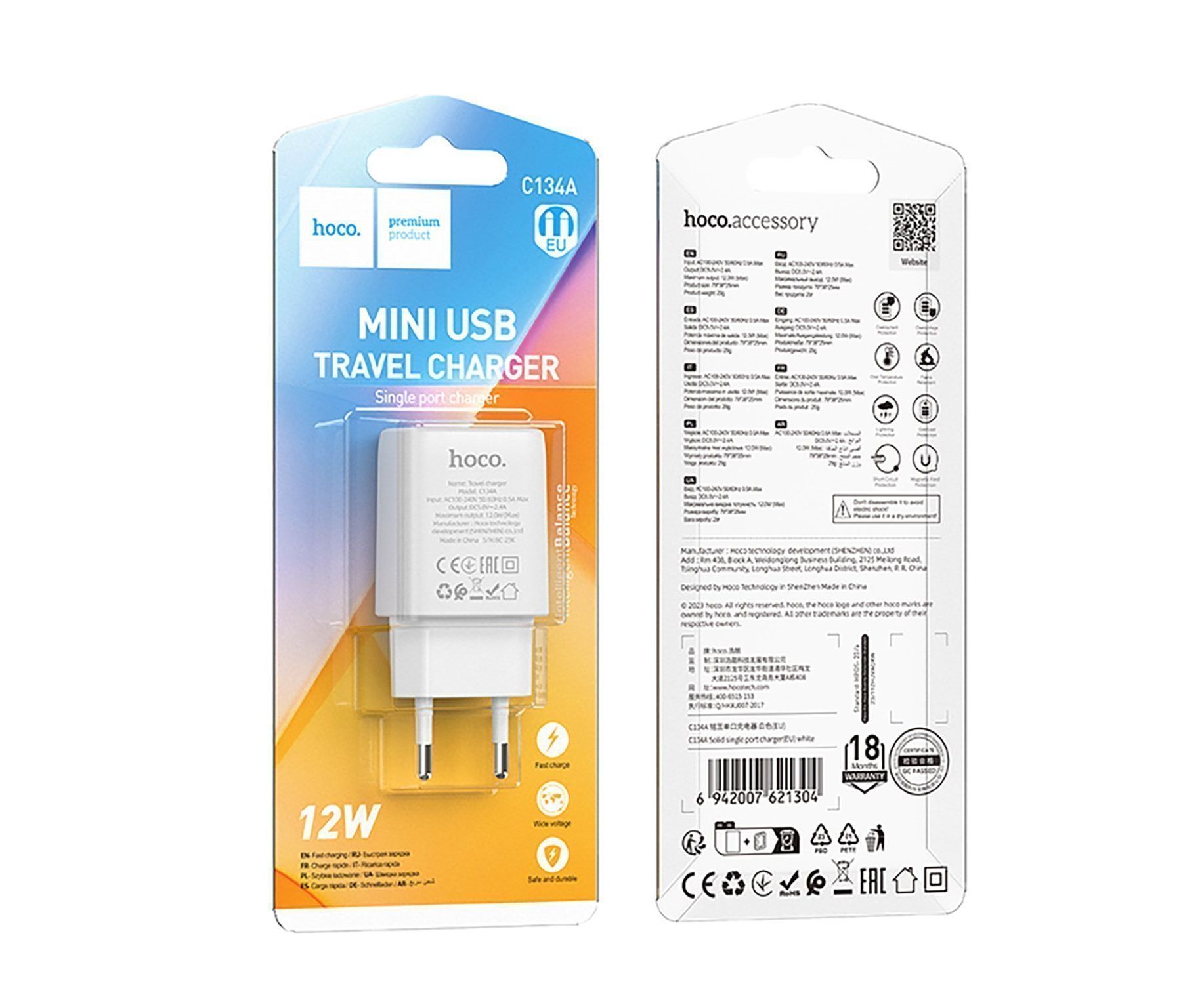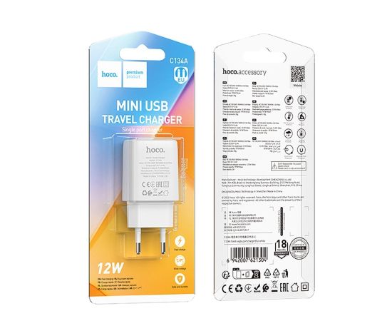 Адаптер Сетевой Hoco C134A Solid USB 2,4A/12W (white) (240258)