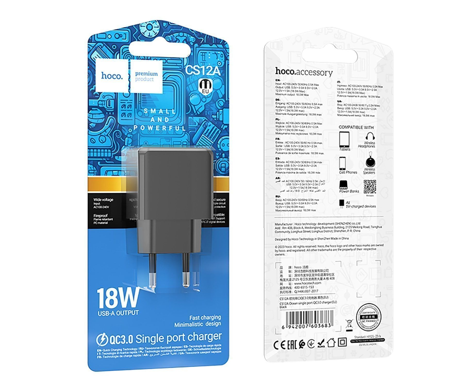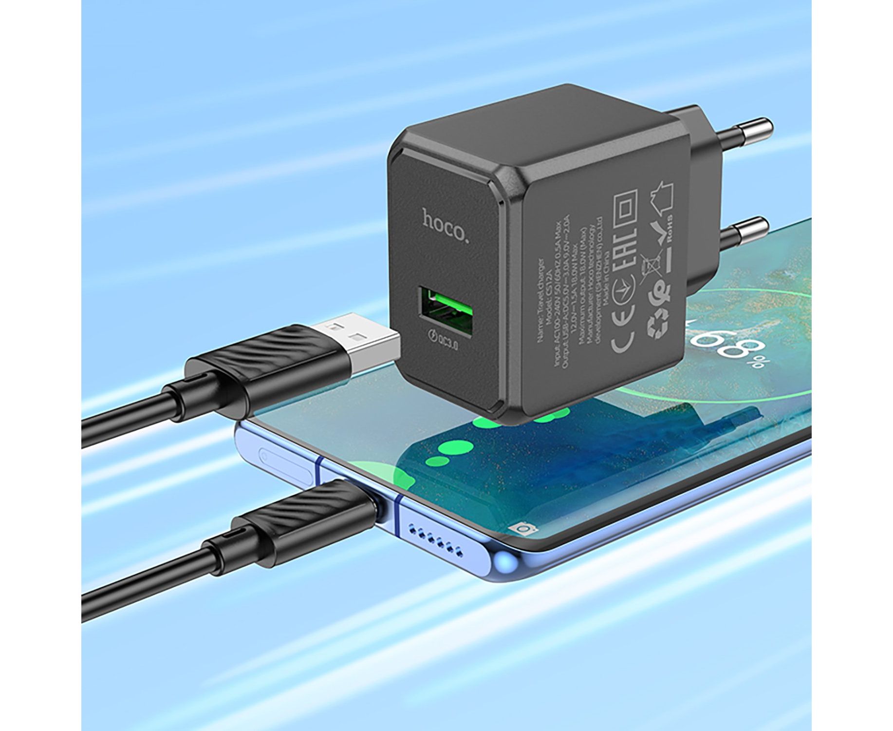 Адаптер Сетевой Hoco CS12a Ocean USB 3A/18W (black) (240551)
