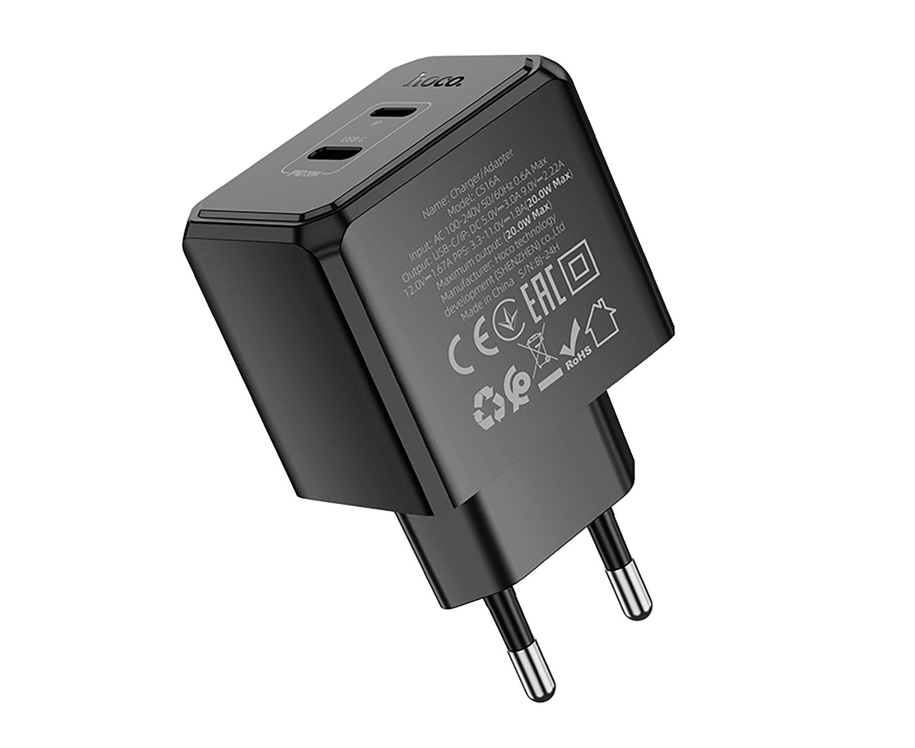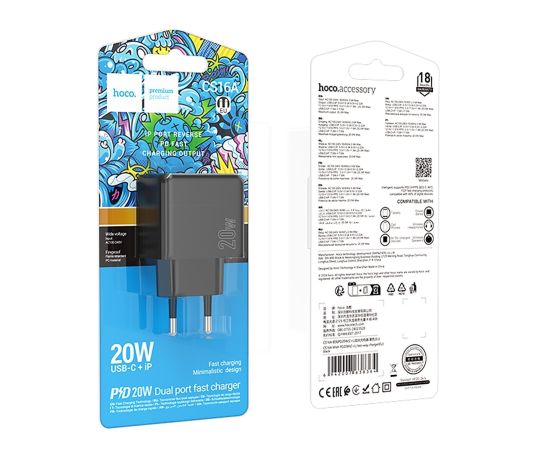 Адаптер Сетевой Hoco CS16A Wish Type-C/Lightning 3A/20W (black) (241002)