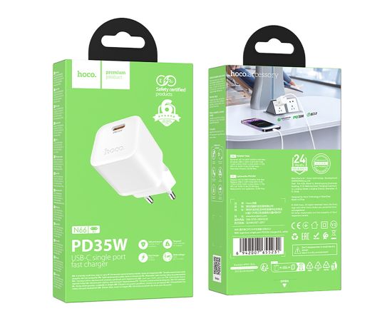 Адаптер Сетевой Hoco N66 Ingenious PD Type-C 3A/35W (white) (241007)