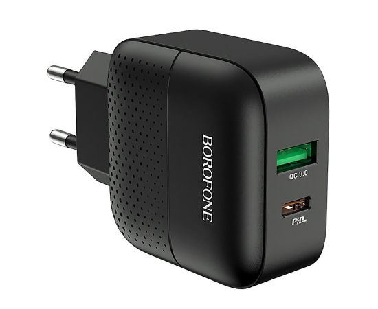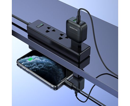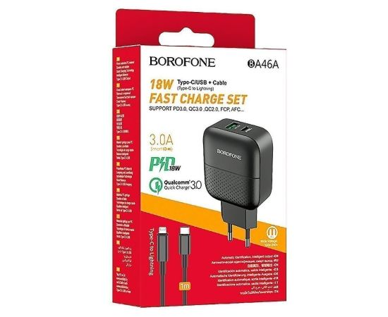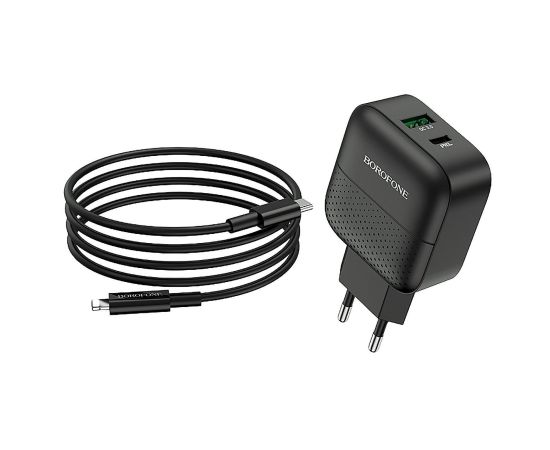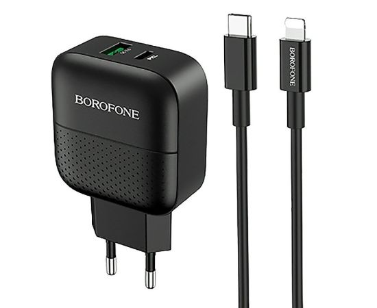 Адаптер Сетевой с кабелем Borofone BA46A Premium PD+QC3.0 1USB/1TYPE-C/5V/3A +Type-C to Light(124189