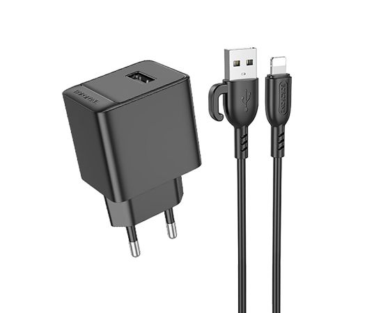 Адаптер Сетевой с кабелем Borofone BAS11A Erudite USB 2,1A/10,5W (USB/Lightning) (black) (225091)
