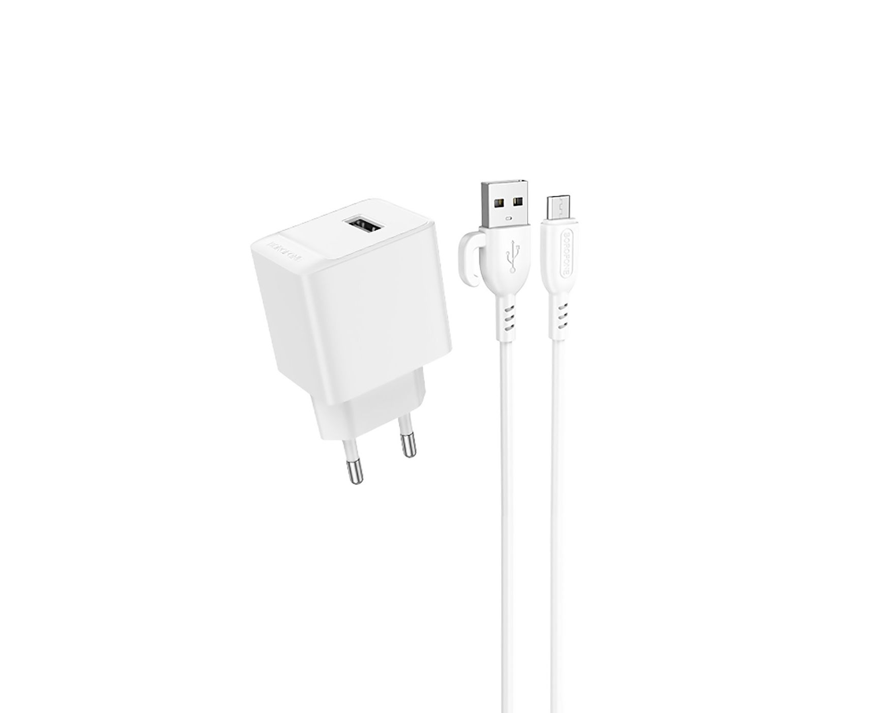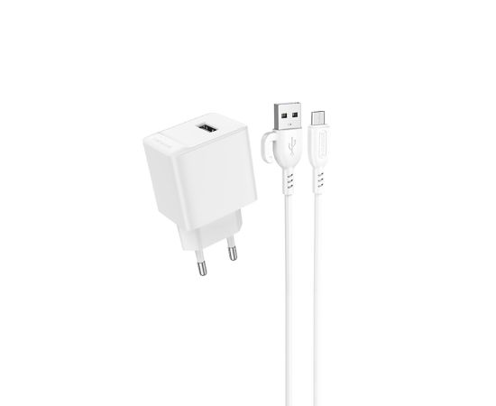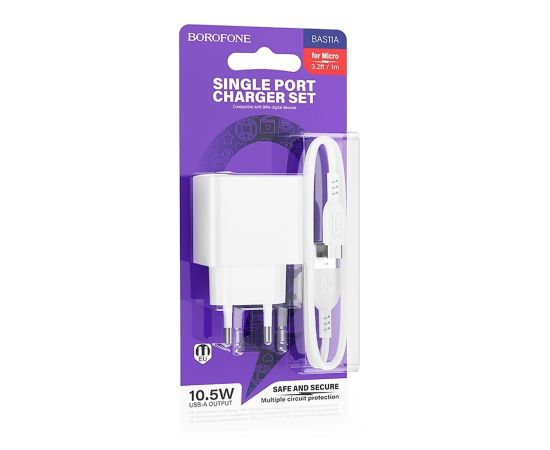 Адаптер Сетевой с кабелем Borofone BAS11A Erudite USB 2,1A/10,5W (USB/Micro USB) (white) (225094)