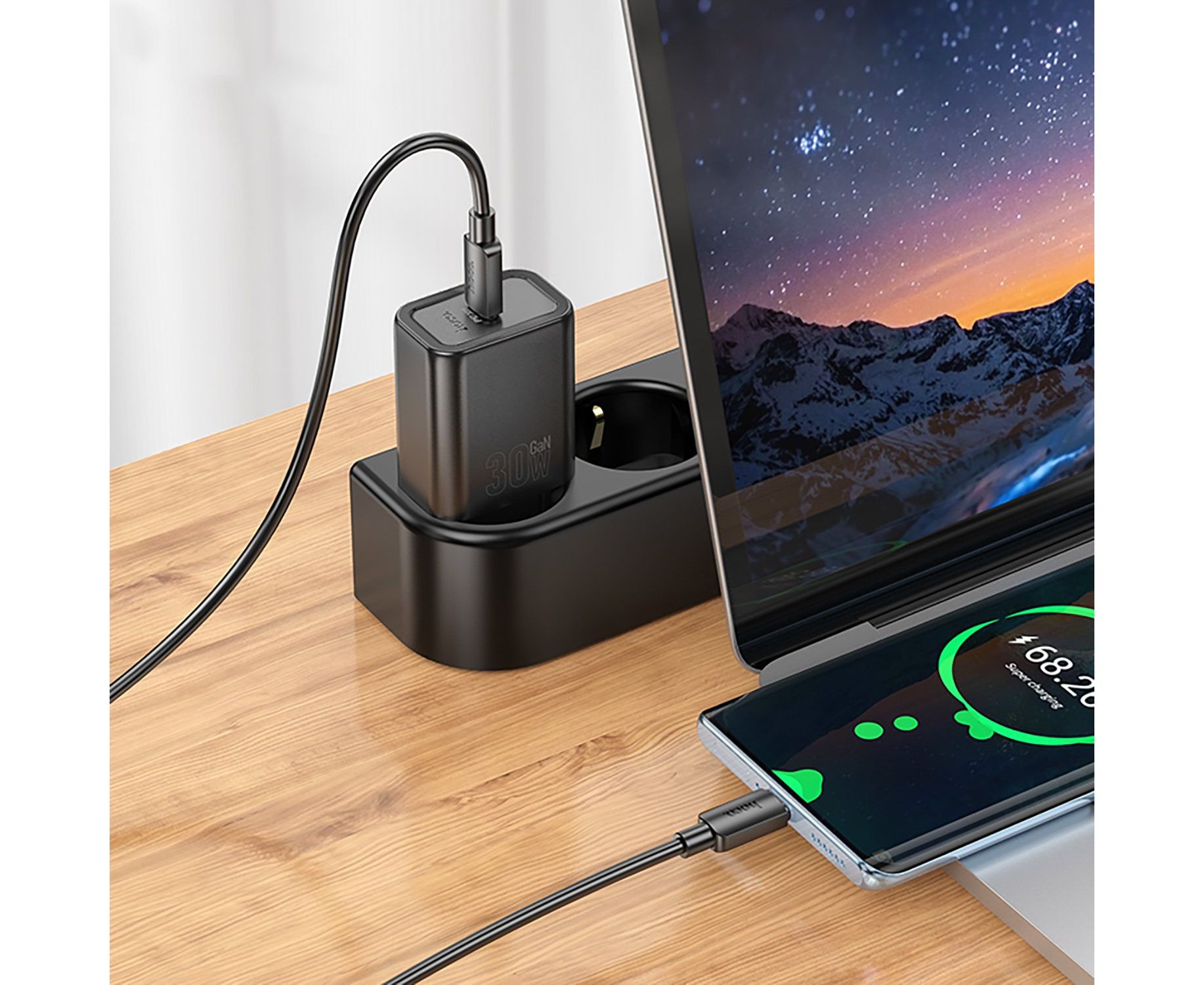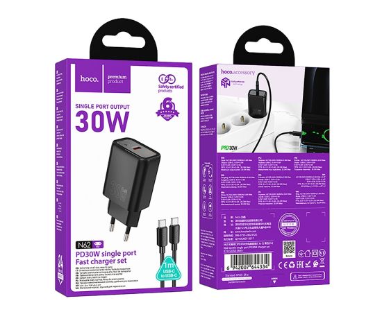 Адаптер Сетевой с кабелем Hoco N62 Gentle PD Type-C 3A/30W (Type-C/Type-C) (black) (241810)