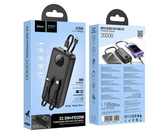 Аккумулятор внешний резервный HOCO J132A Sabio 22.5W+PD20W fully compatible power bank with 3 cables(20000mAh) (черный)