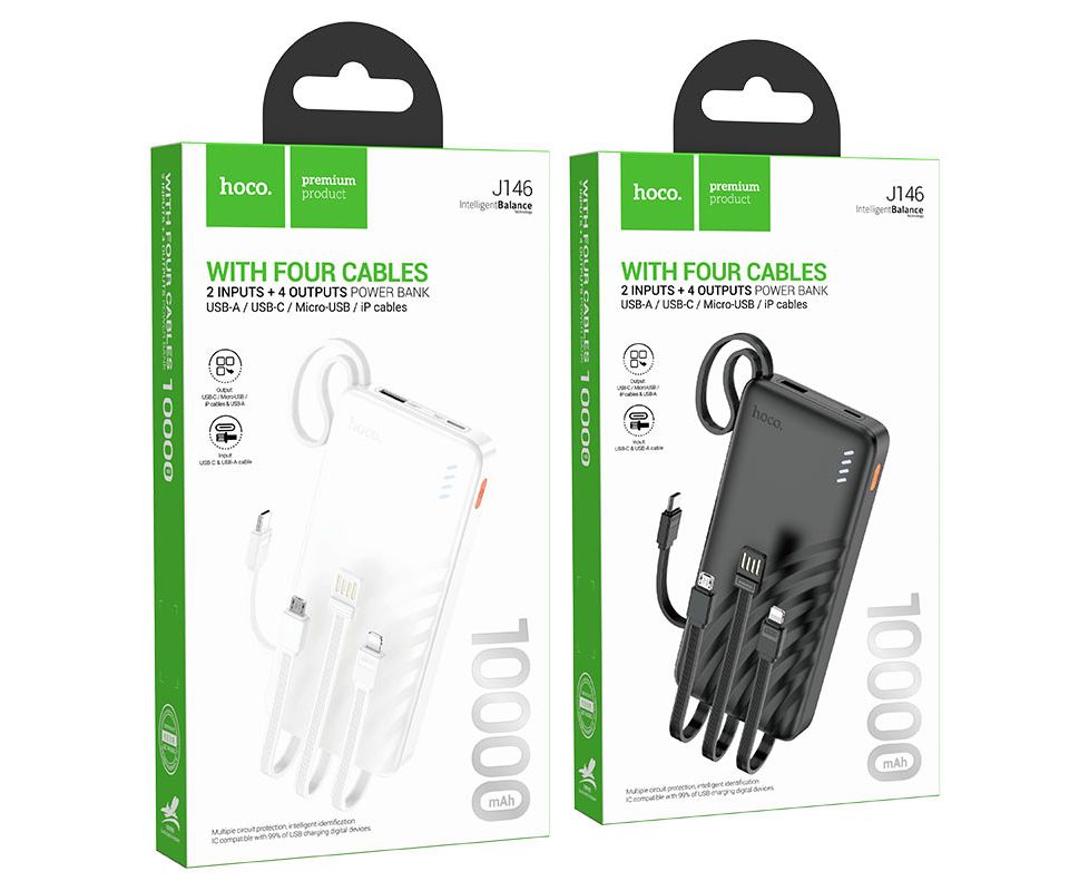 Аккумулятор внешний резервный HOCO J146 Night tide with 4 cables (10000mAh) (черный)