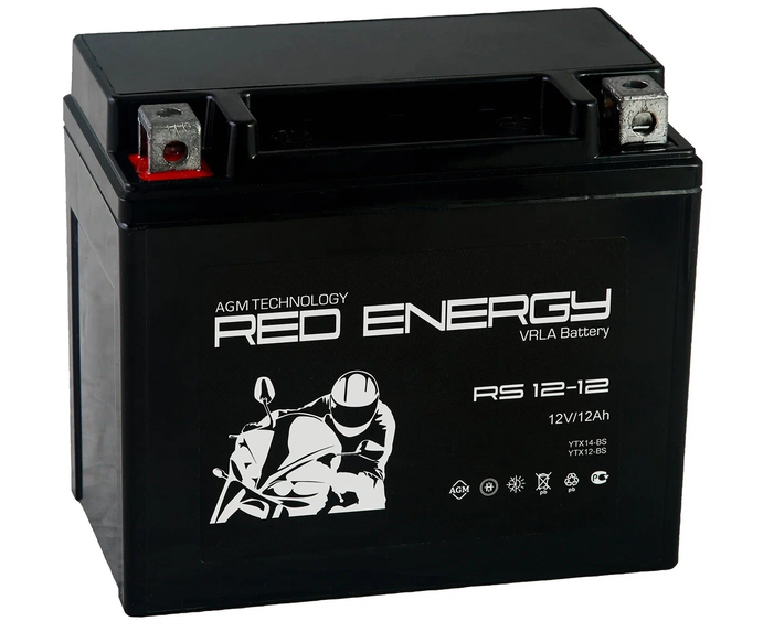 Стартерные аккумуляторы RED ENERGY отвечают международным стандартам JIS / DIN / EN. Рекомендованы для применения в мотоциклах, скутерах, водных мотоциклах, квадроциклах, мотовездеходах, бензиновых и дизельных генераторах. Универсальные размеры стартерных аккумуляторов RED ENERGY подходят для всех известных зарубежных и российских марок мототехники. Особенности: - Изготовлены по технологии AGM - Высокие стартерные токи - Выдерживают тяжелые условия эксплуатации - Увеличенный срок хранения без подзарядки - Быстрое восстановление после глубокого разряда - Низкий саморазряд - Устойчив к циклическим режимам Характеристики: Стартерный ток, A: 180 Емкость, А/ч: 10 Номинальное напряжение постоянного тока, В: 12 Полярность: прямая Габаритные размеры, мм: 150х86х131 Соответствие международному коду JIS: YTX14-BS, YTX12-BS