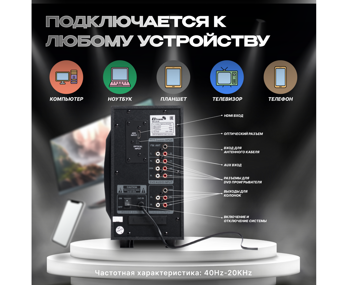 ELTRONIC 20-84 HOME SOUND - это лучший выбор для тех, кто ценит качественный звук и комфортное прослушивание музыки и фильмов. Погрузитесь в мир звуков и наслаждайтесь каждой нотой с ELTRONIC 20-84 HOME SOUND.