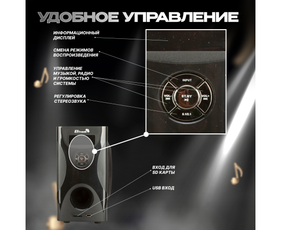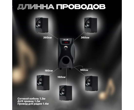 ELTRONIC 20-84 HOME SOUND - мощная акустическая система 5.1 для настоящих ценителей качественного звука. С этой системой вы окунетесь в потрясающую атмосферу кино и музыки прямо у себя дома.