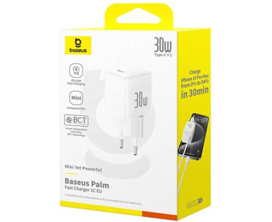 АП сетевой Baseus Palm Fast P10111605213-00, 3.0А, 1 Type-C, 30W, пластик, белый