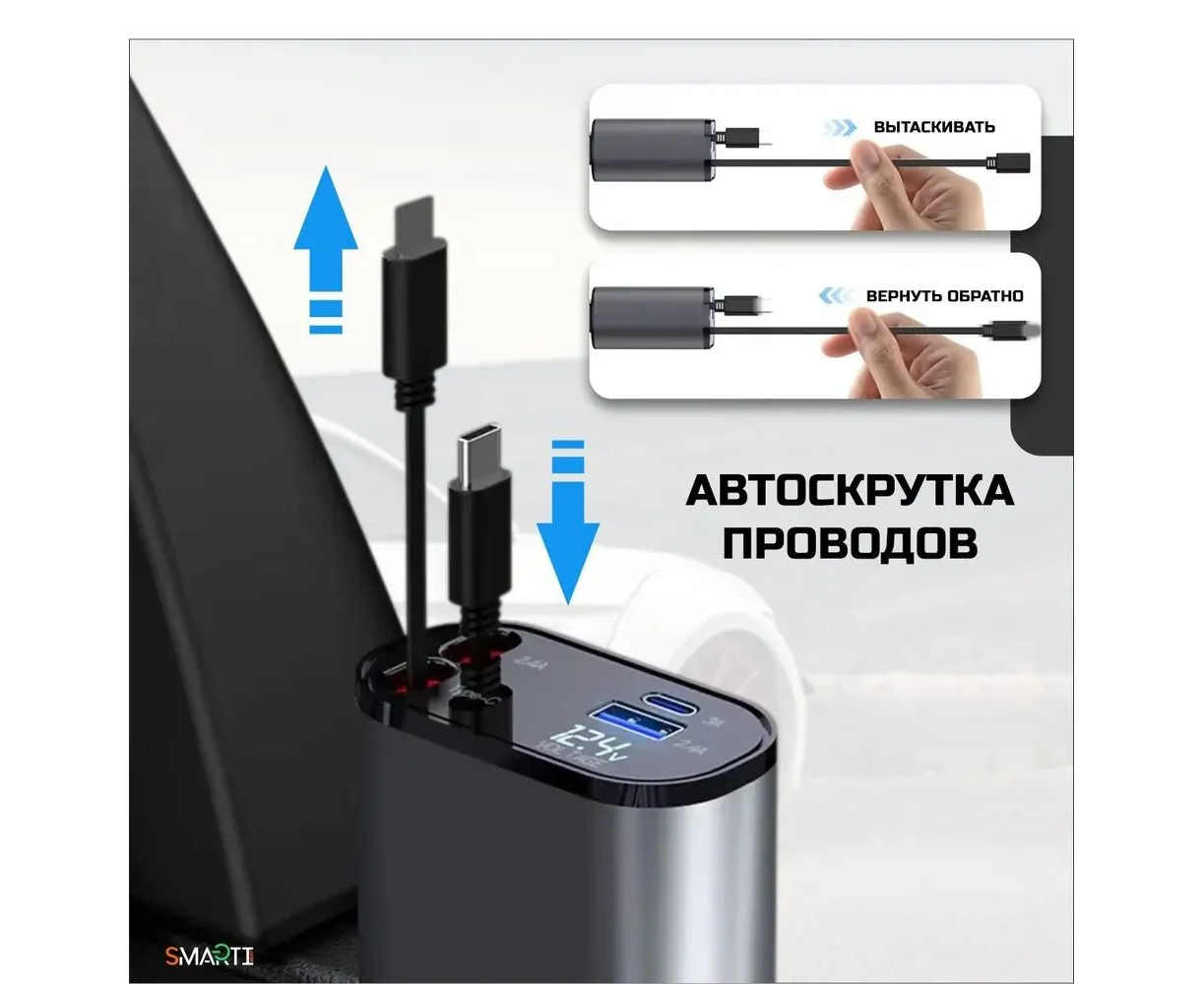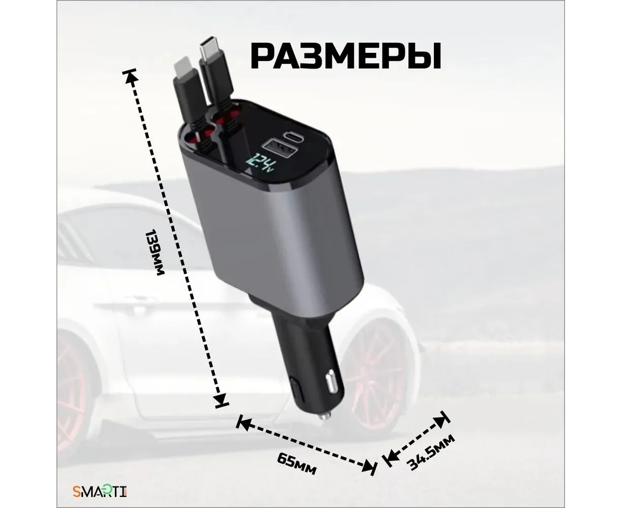 Автомобильная зарядка SmartiNext АPC-XH-X10 4в1, кабель Type-C и Lightning, черный