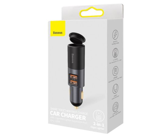 Автомобильное зарядное устройство BASEUS Share Together Port, 2xUSB + прикуриватель, 3A, 120W, черный