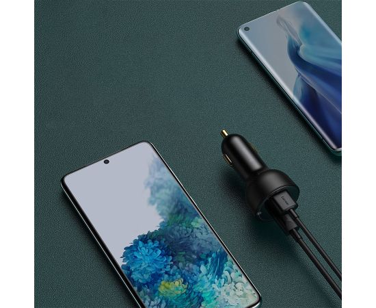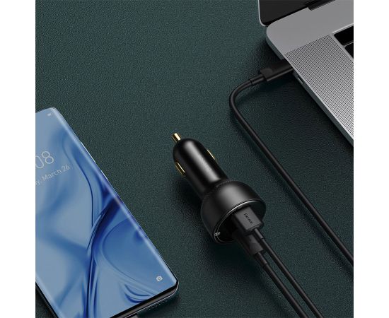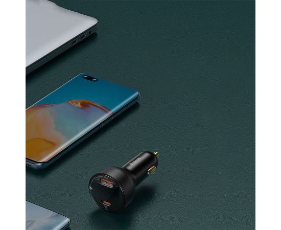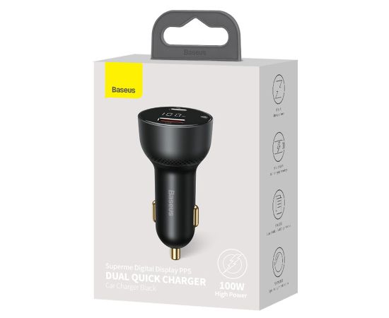 Автомобильное зарядное устройство BASEUS Superme Digital Display, 1xUSB + 1xUSB-C, 5A, 95W, черный