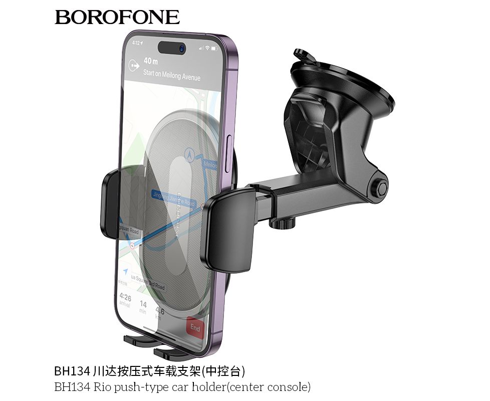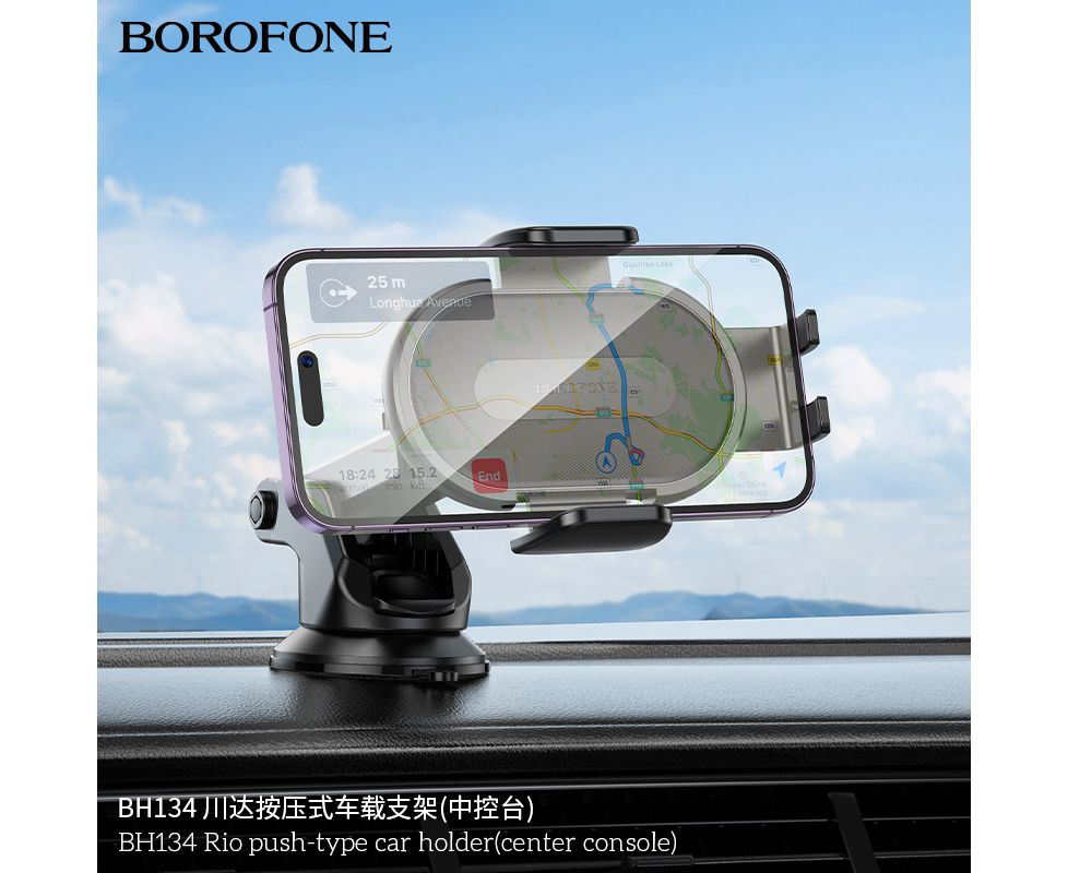 Автомобильный держатель BOROFONE BH134 Rio push-type car holder(center console) (черный)