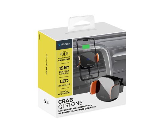 Автомобильный держатель Crab QI Stone Black, Deppa, 55207
