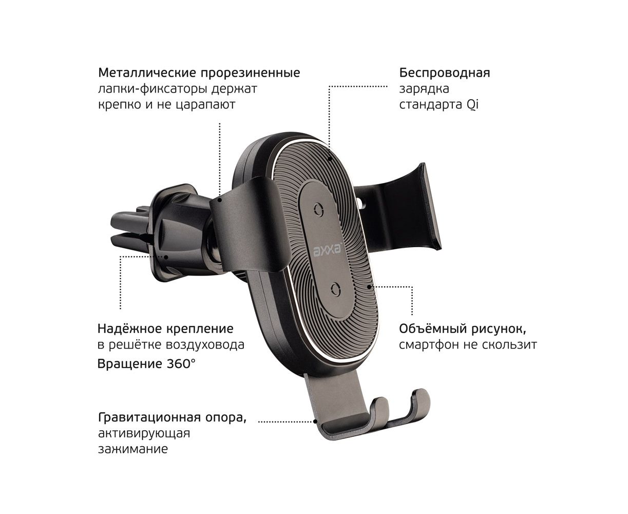 Автомобильный держатель Gravity Qi, Axxa, 5527