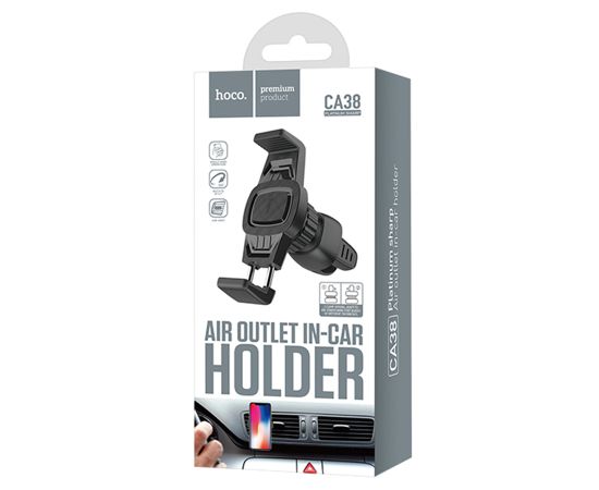Автомобильный держатель HOCO CA38 Platinum, зажимной, на воздуховод, черный+серый