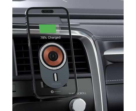 Автомобильный держатель MagSafe Crystal Slim QI, серый, Deppa, 55209