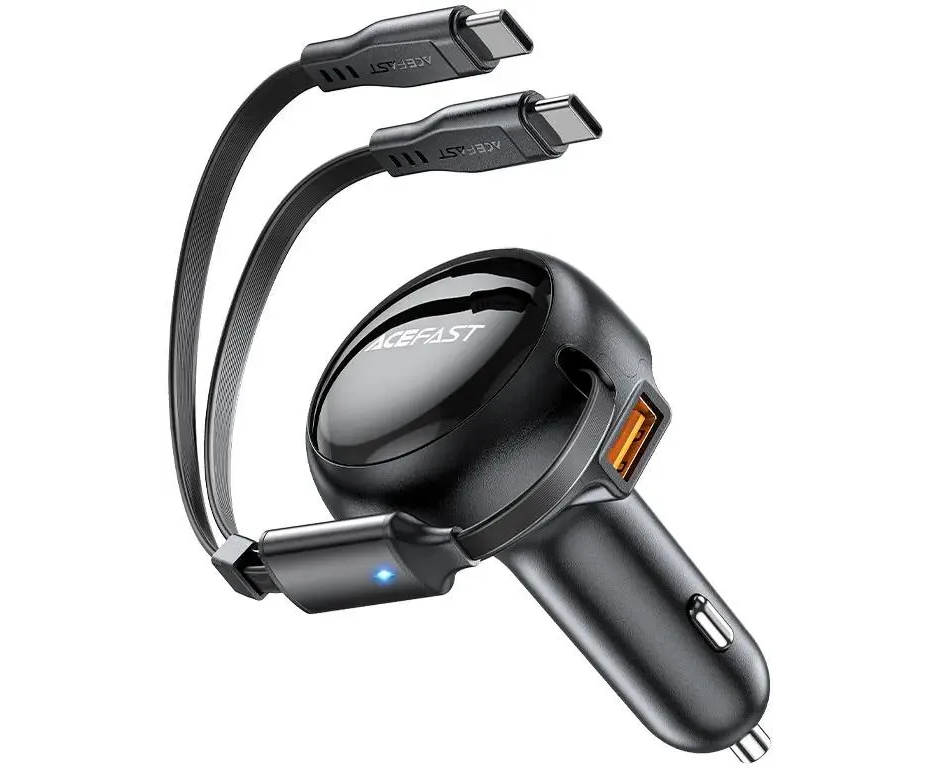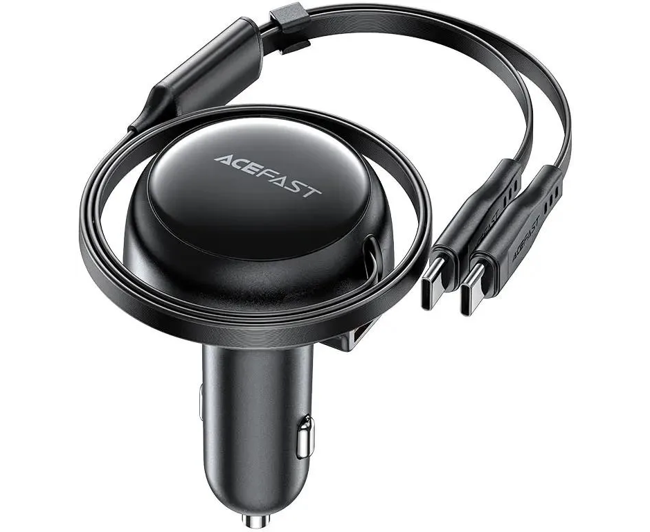 АЗУ ACEFAST AF-B13-BK 53W 2-in-1 USB-A/2*USB-C car charger with retractable cable Black