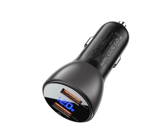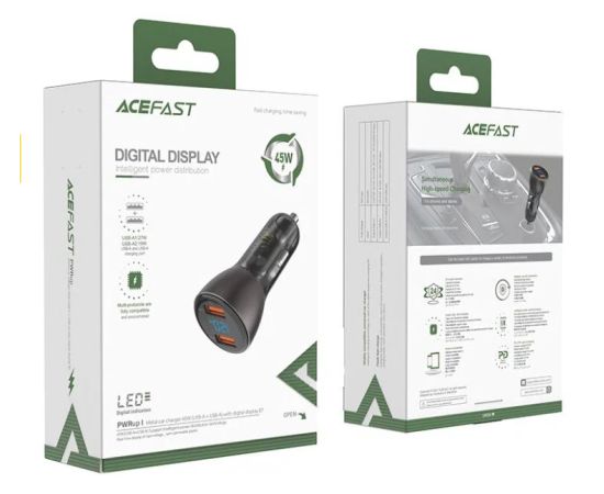 АЗУ ACEFAST B7 metal car charger 45W (USB-A + USB-A) with digital display transparent black