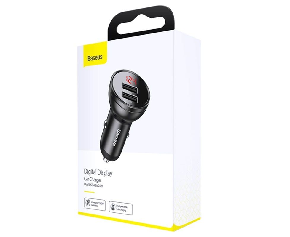 АЗУ Baseus (CCBX-0G) Digital Display 2USB 4.8A Car Charger 24W Grey