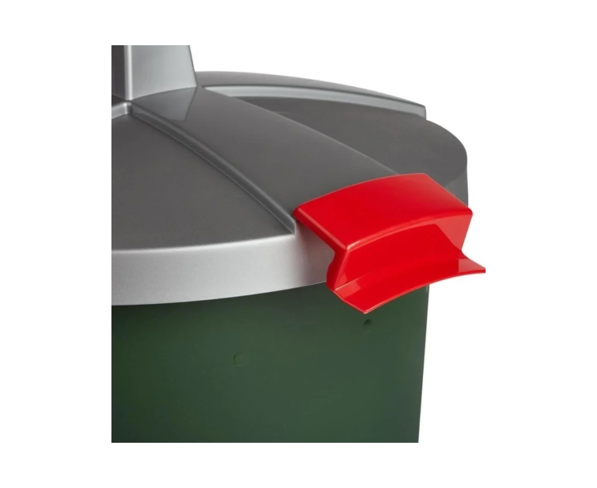 Имеет надежные застежки и крышку, поэтому не пропускает наружу неприятные запахи.