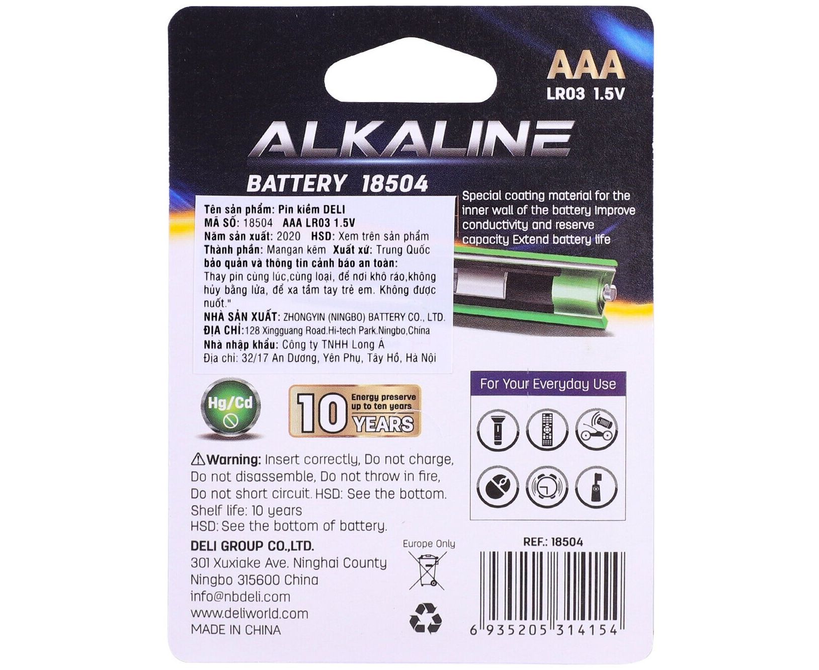 Батарея Deli E18504 AAA, 1.5V, 2шт