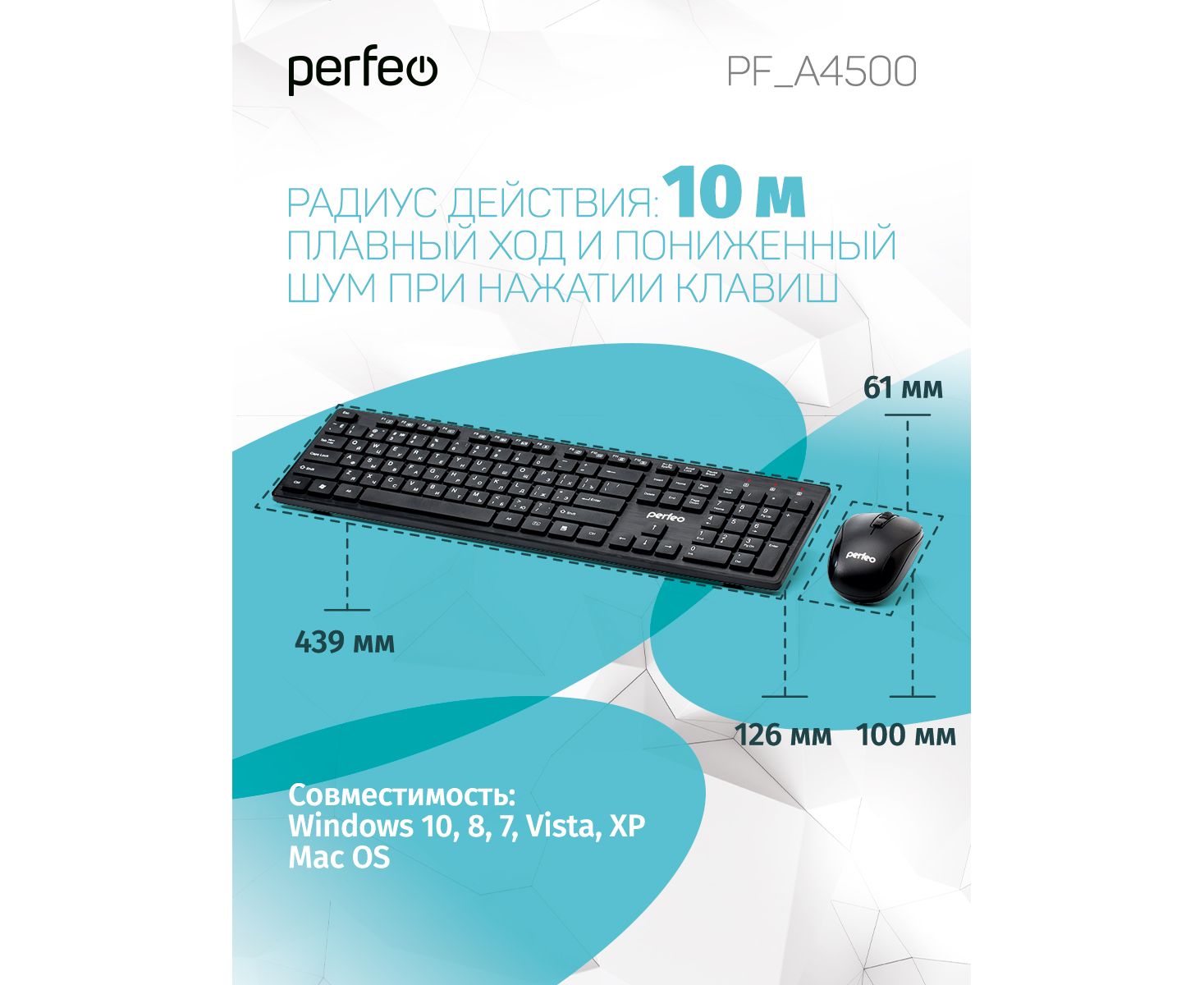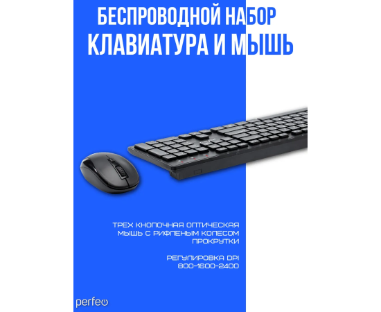 Беспроводной набор клавиатура + оптическая мышь Perfeo "TWIN": USB, (Арт. PF_A4500)