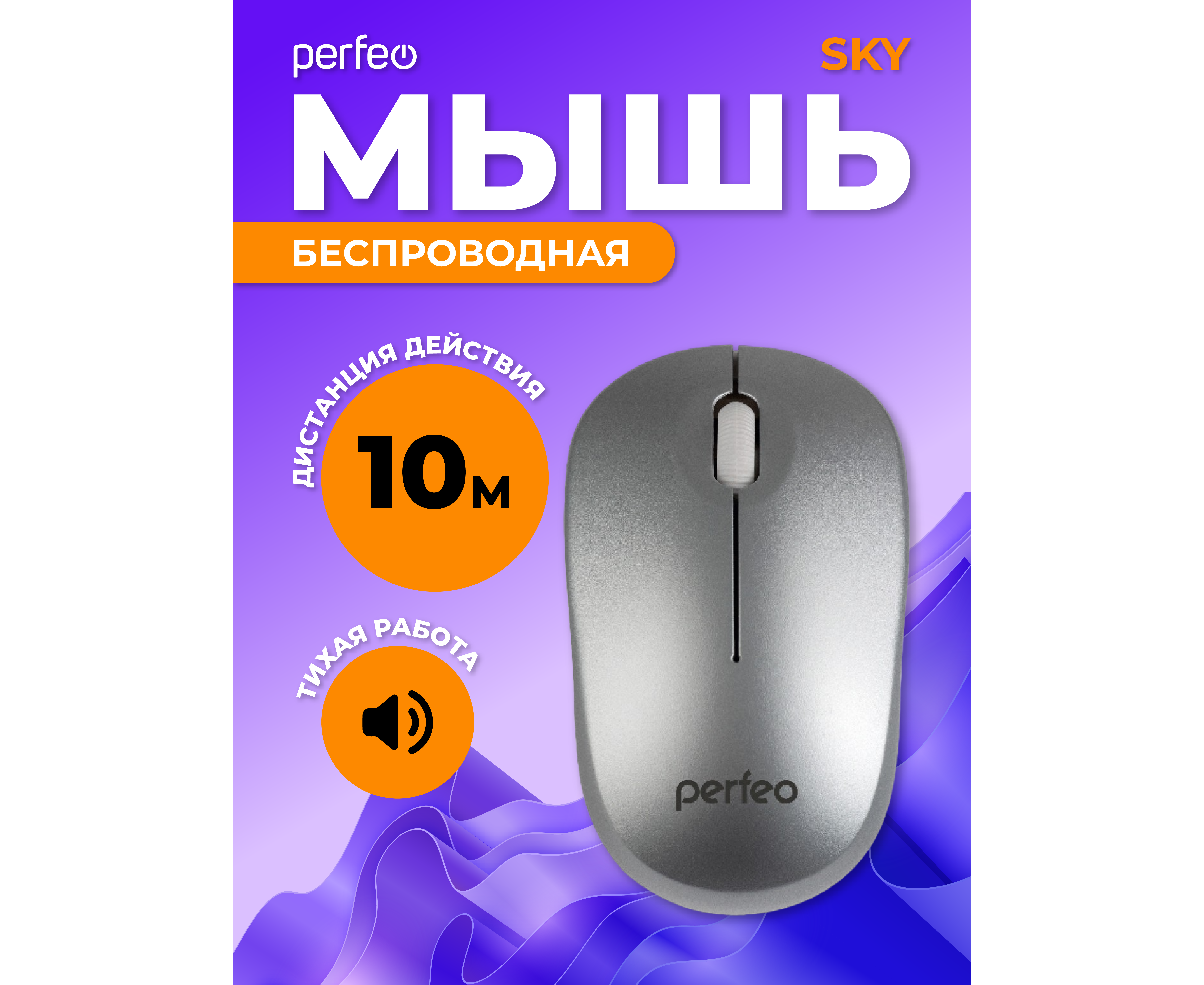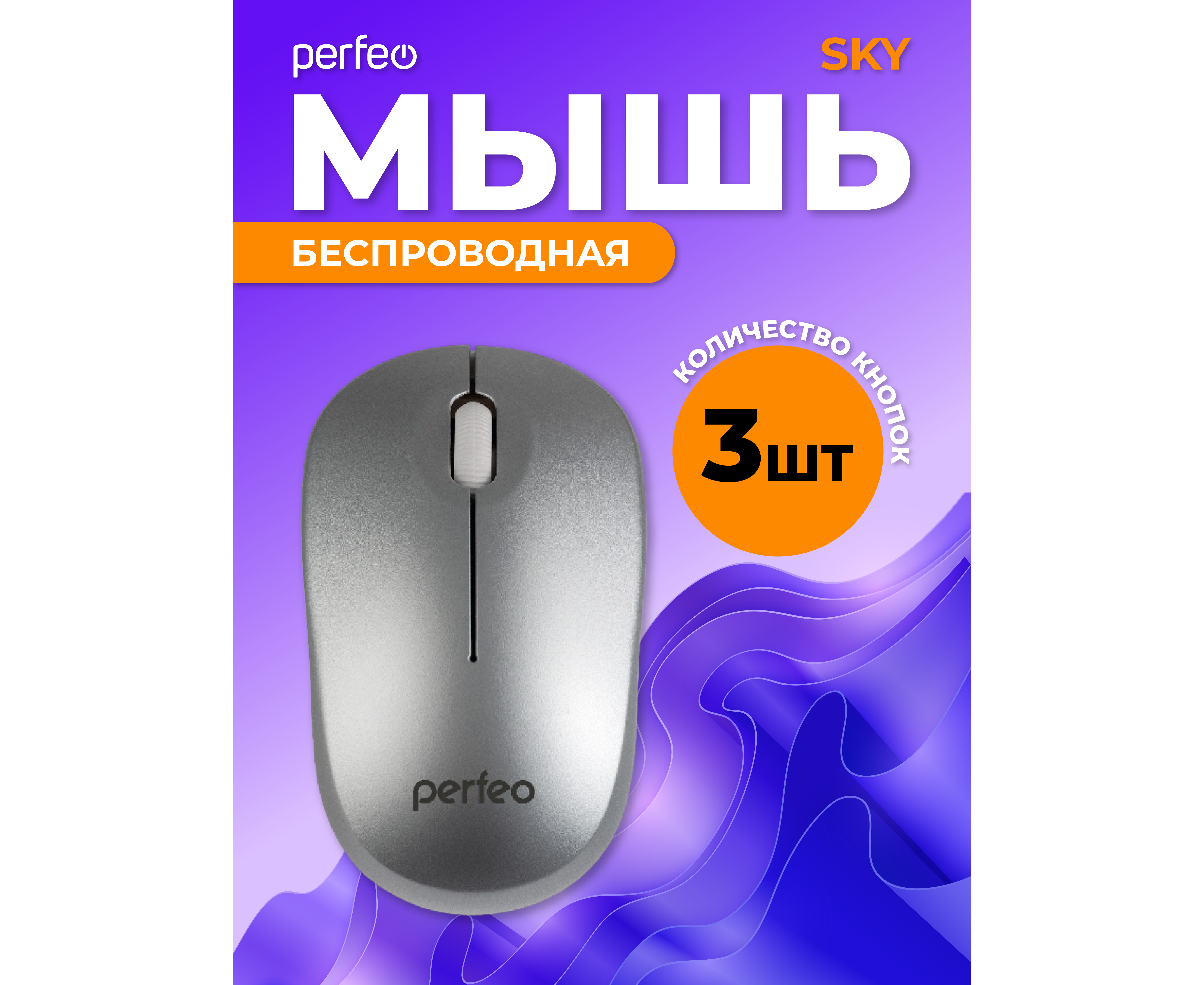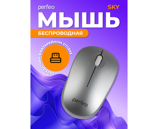 Беспроводная мышь Perfeo, оптич. "SKY", 3 кн, DPI 1200, USB, серебряный, (Арт. PF_A4506)