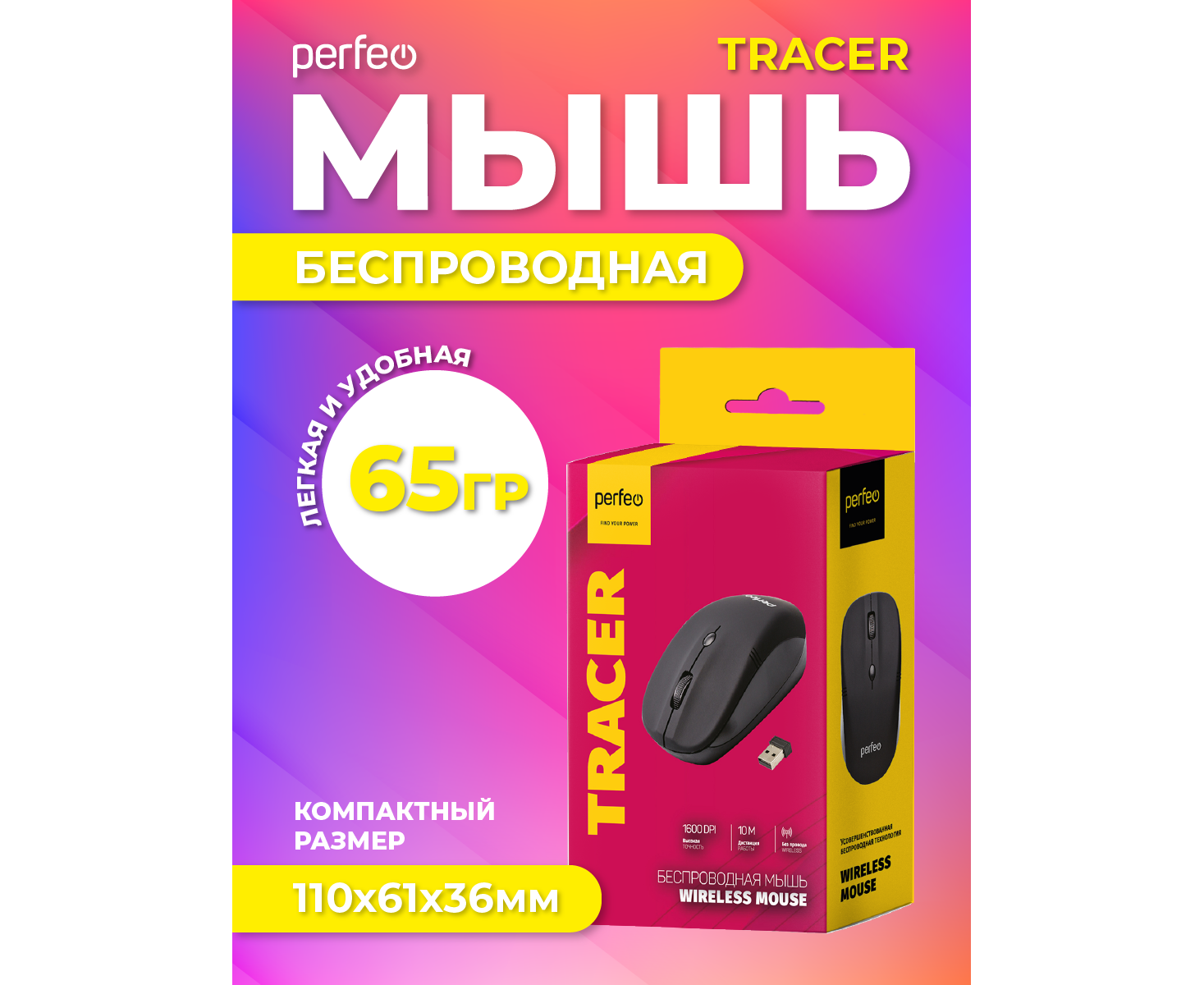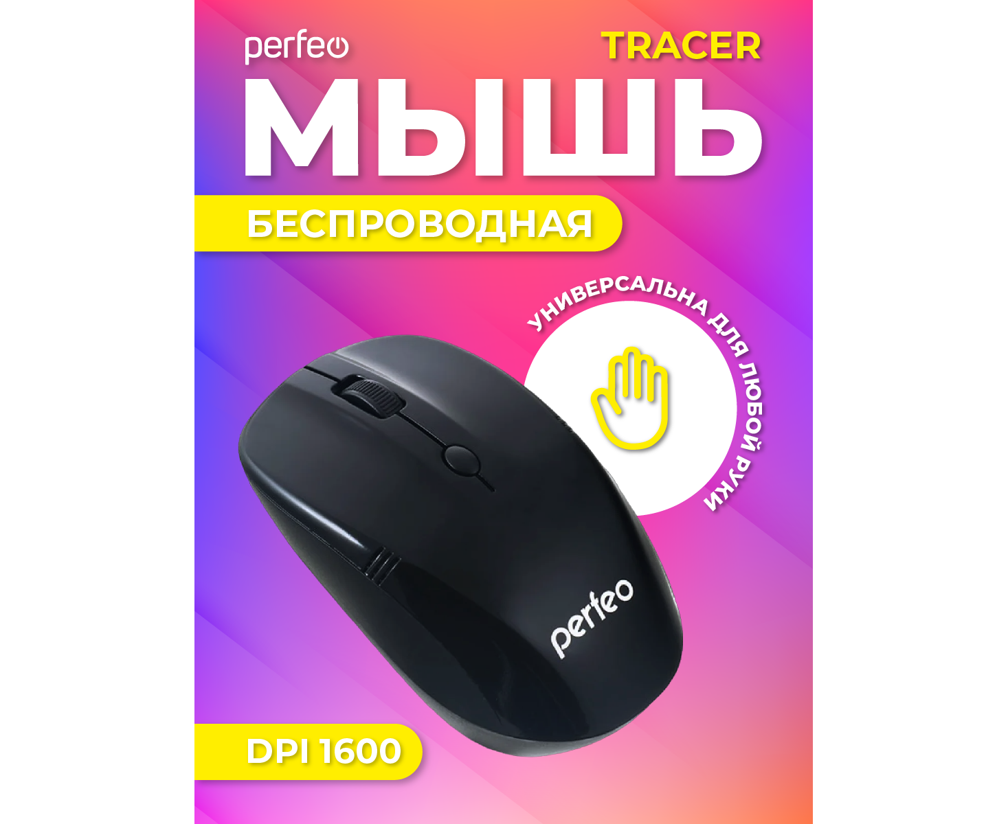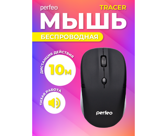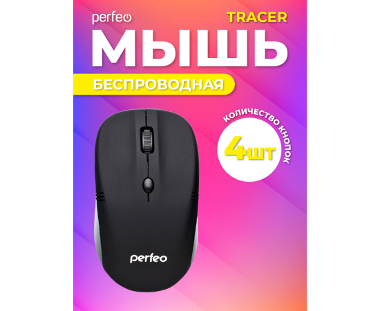 Беспроводная мышь Perfeo, оптич. "TRACER", 4 кн, 1200 DPI, USB, чёрный