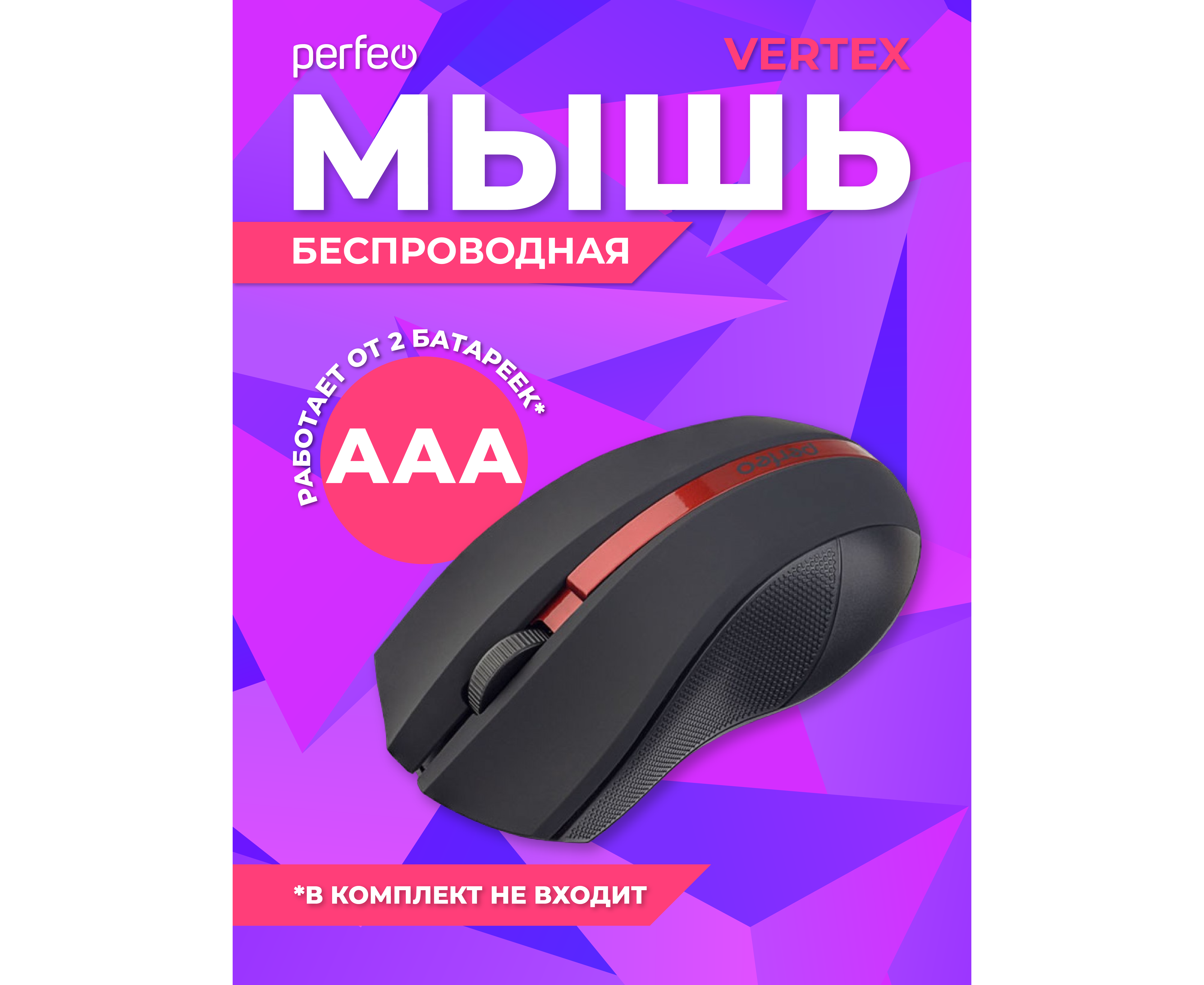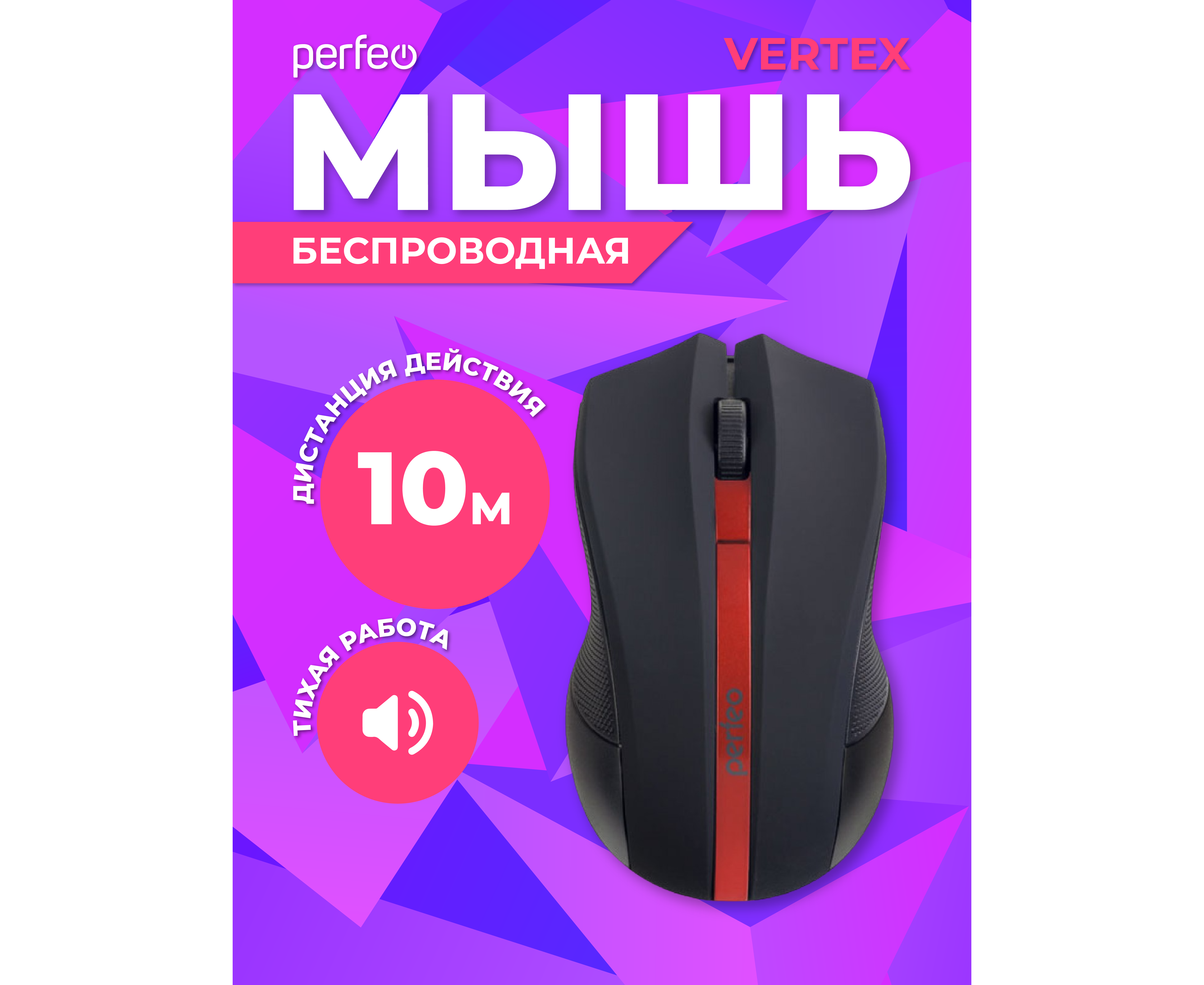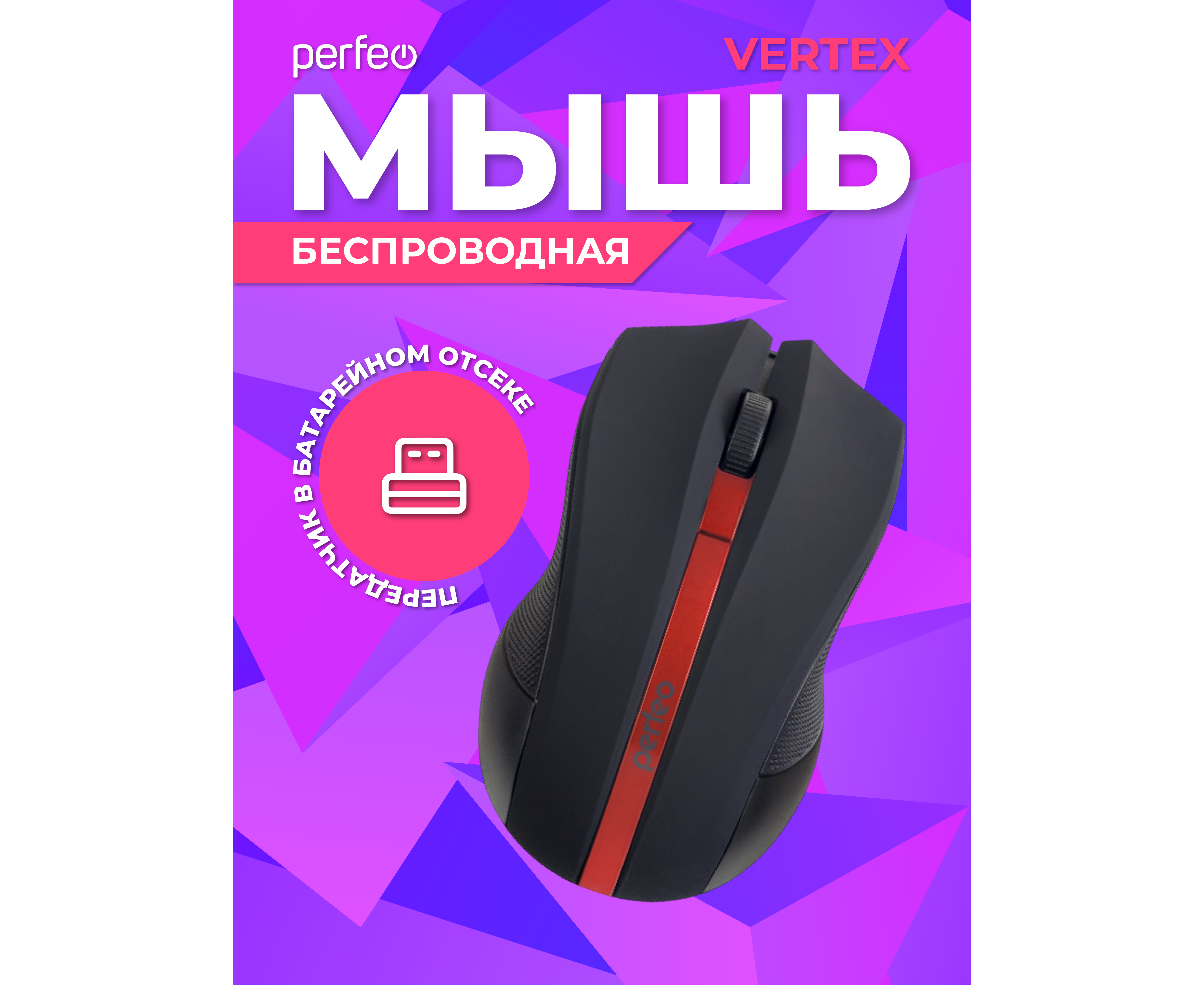 Беспроводная мышь Perfeo, оптич. "VERTEX", 3 кн, DPI 1000, USB, чёрный/красный, (Арт. PF_A4779)