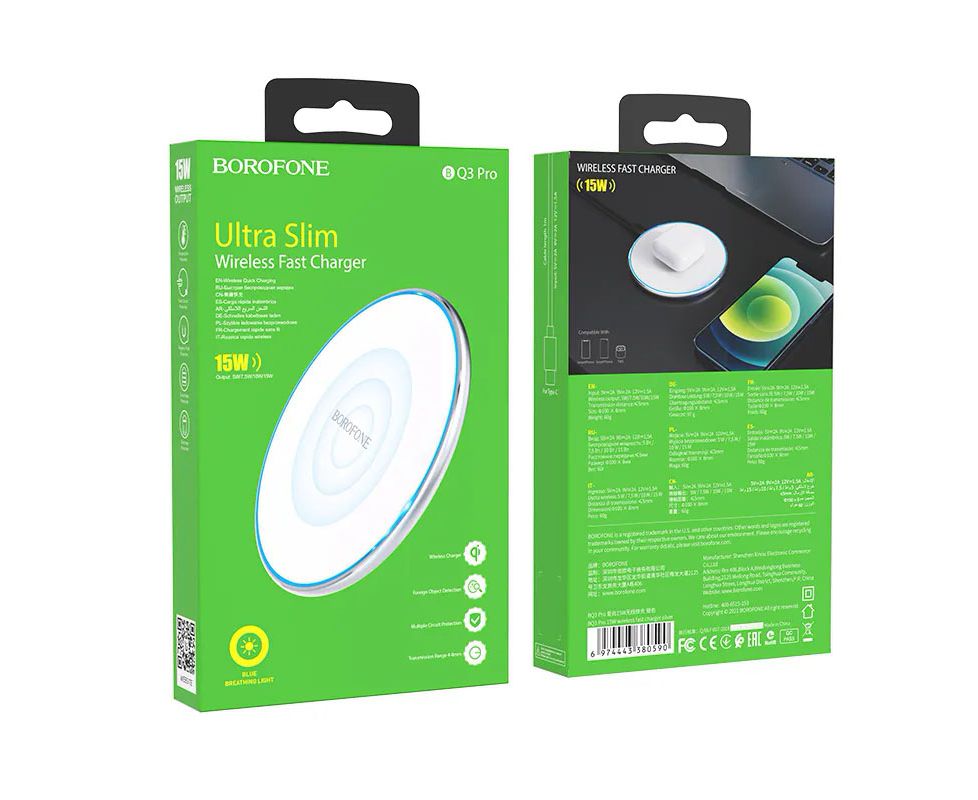 Беспроводная зарядка BOROFONE BQ3 Pro 15W wireless fast charger (серебро)