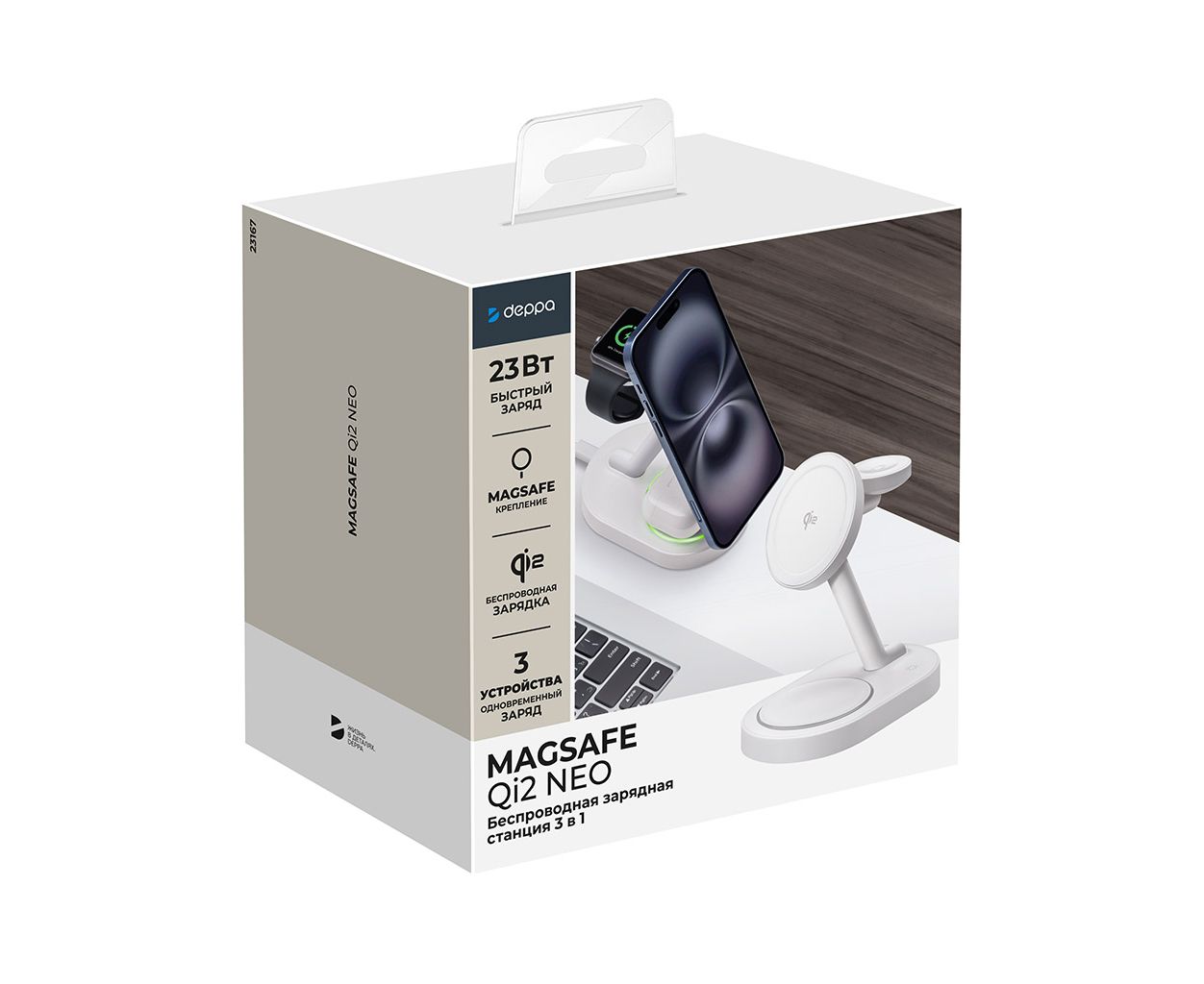 Беспроводная зарядная станция 3 в 1 MagSafe QI2 NEO, белый, Deppa