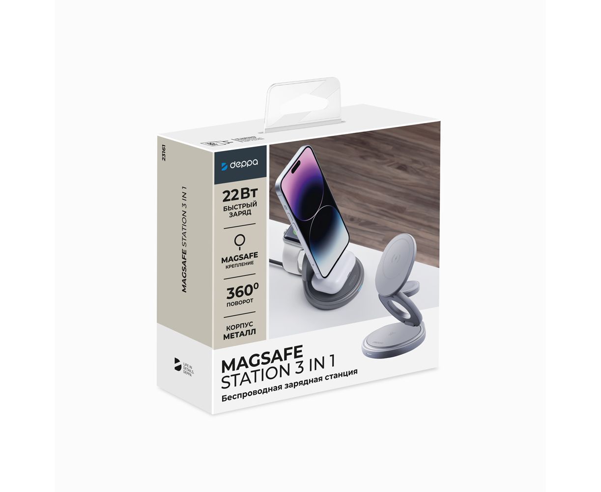 Беспроводная зарядная станция 3 в 1 MagSafe Rotation QI складная, графит, Deppa