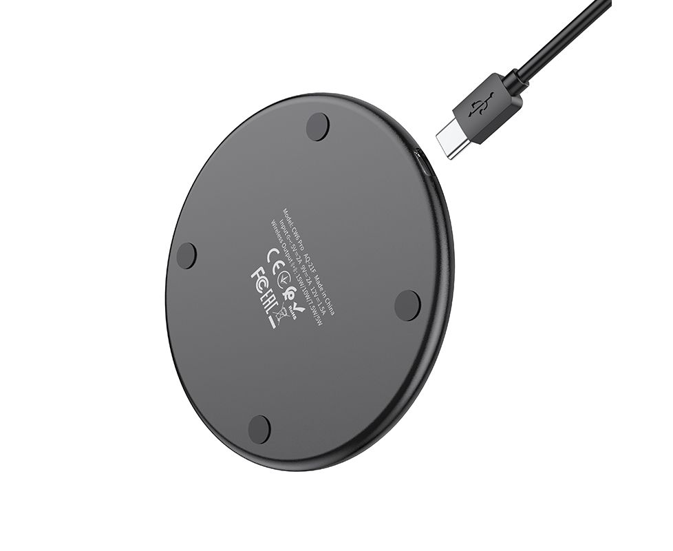 Новая мощная беспроводная зарядка для телефона Hoco CW6 Pro версия. Быстрая беспроводная зарядка выдает мощность в 15W, что позволяет оперативно зарядить ваш смартфон, часы и все что имеет функцию беспроводной зарядки. Беспроводное зарядное устройство имеет ультратонкий дизайн в диаметре всего 100мм и шириной в 8мм. В комплекте с блоком зарядки идет кабель разъемом USB Type C 1м.