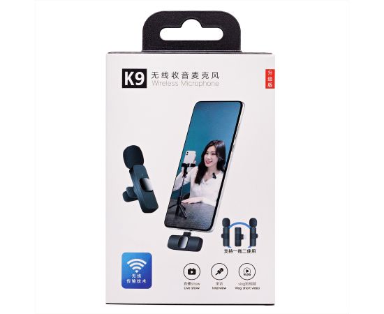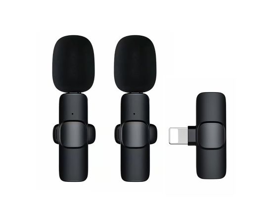 Беспроводной Микрофон петличка - K9 двойной с прищепкой для телефона, Lightning (black) (209932)