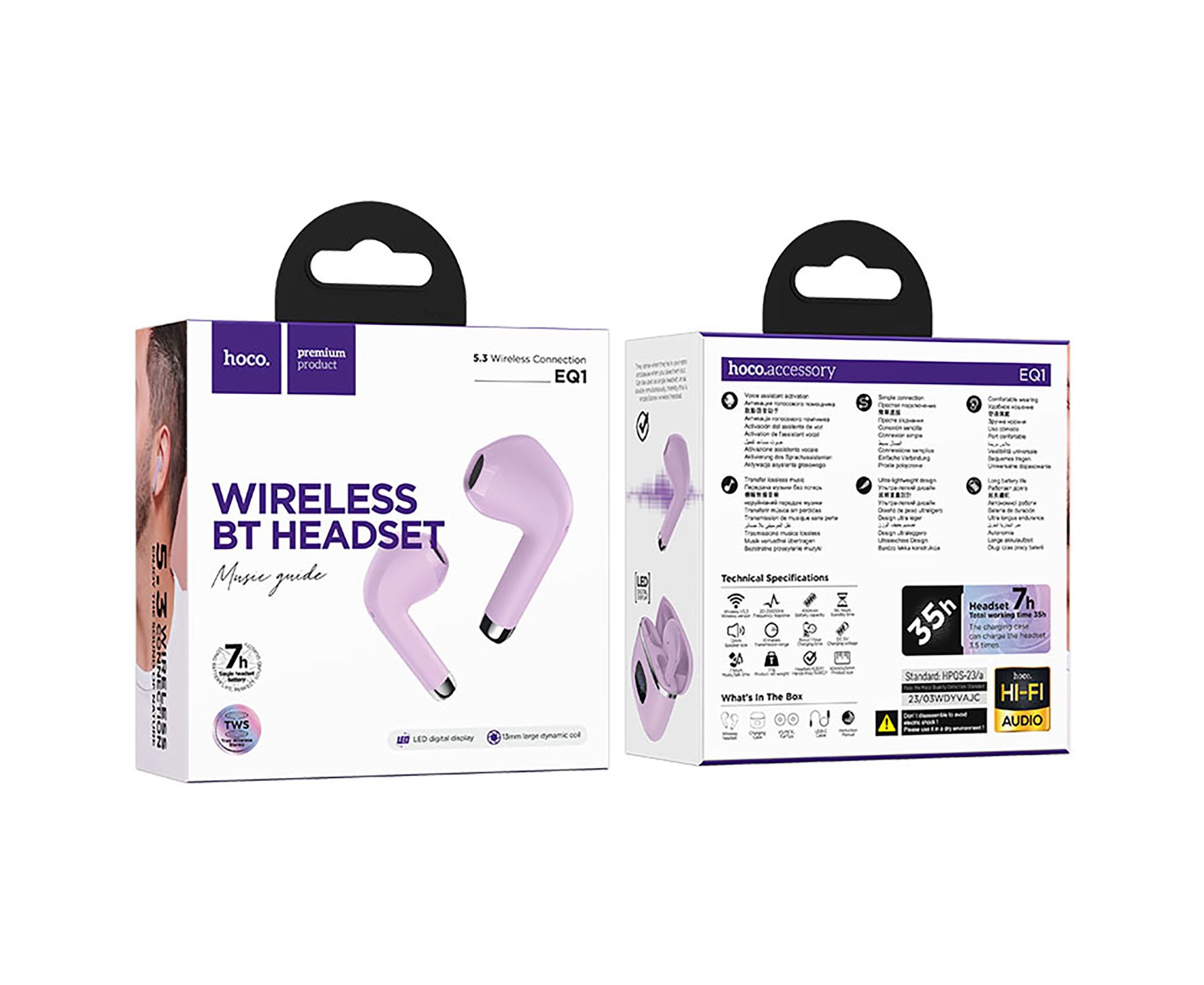 Беспроводные Bluetooth-наушники Hoco TWS EQ1 Music guide (purple) (221598)