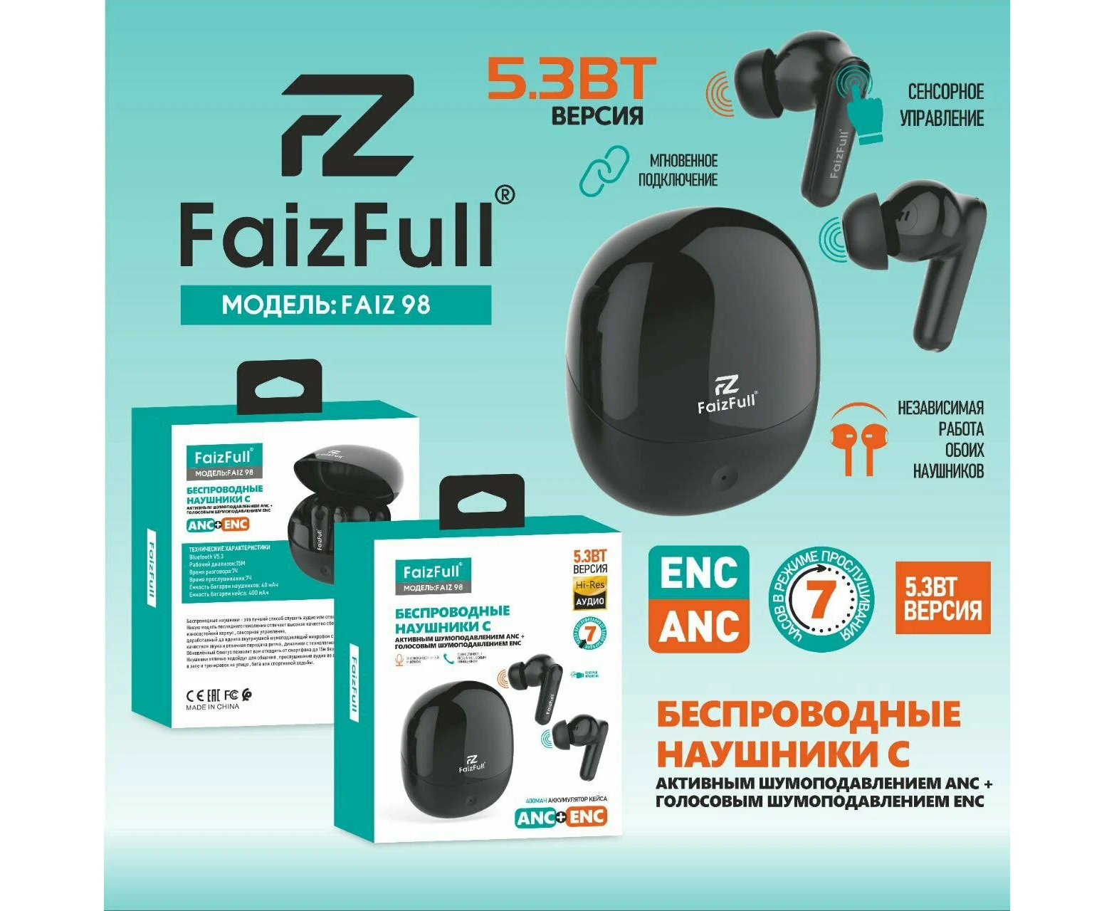 Беспроводные наушники FaizFull Faiz98 ANC+ENC черный