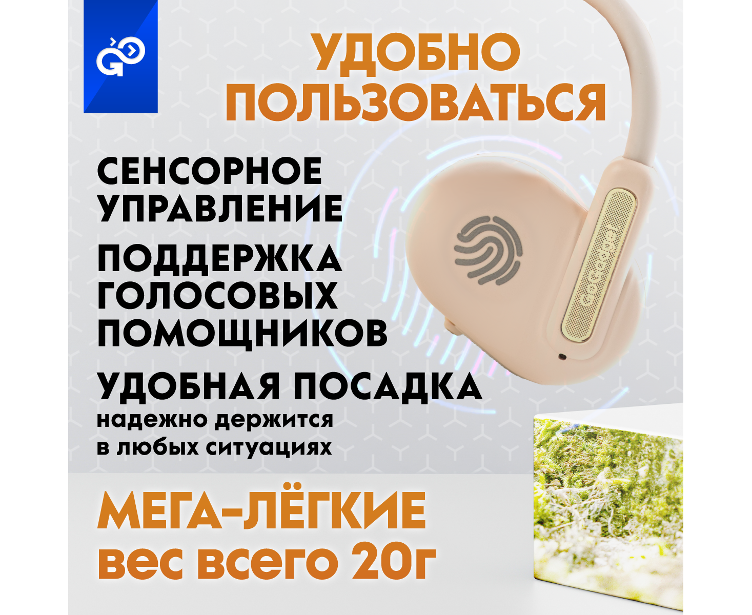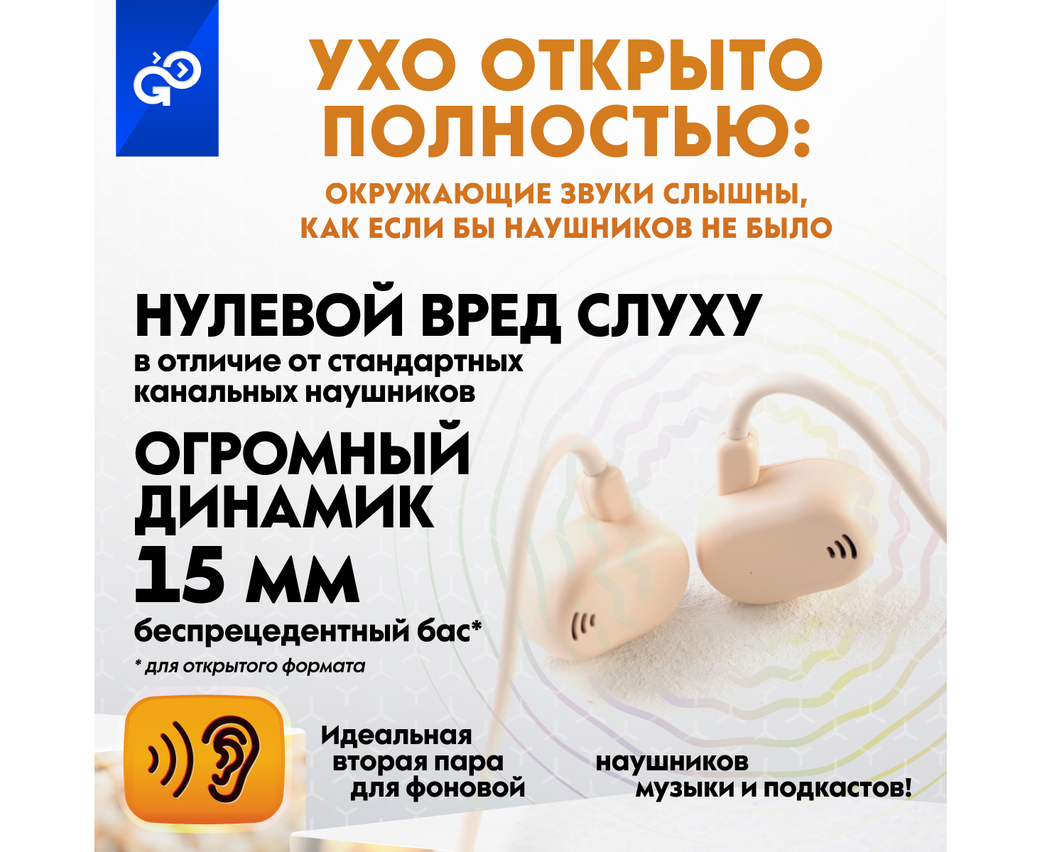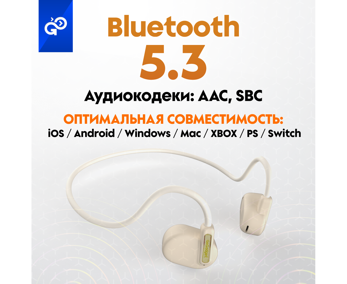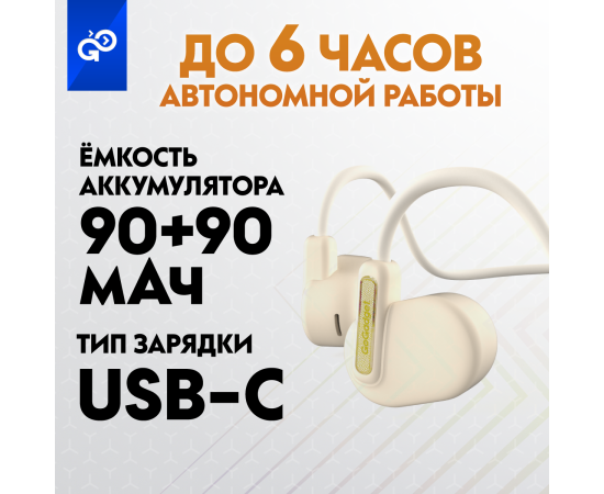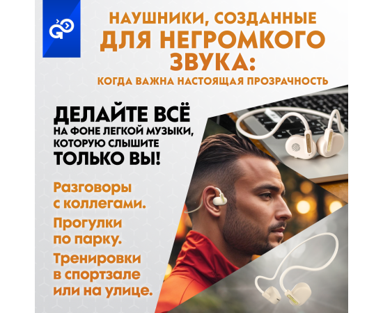 Беспроводные наушники GoGadget OpenAir Arc, зашейная дуга, открытый динамик, 1 микрофон, 90 мАч, до 6 ч БЕЛЫЙ
