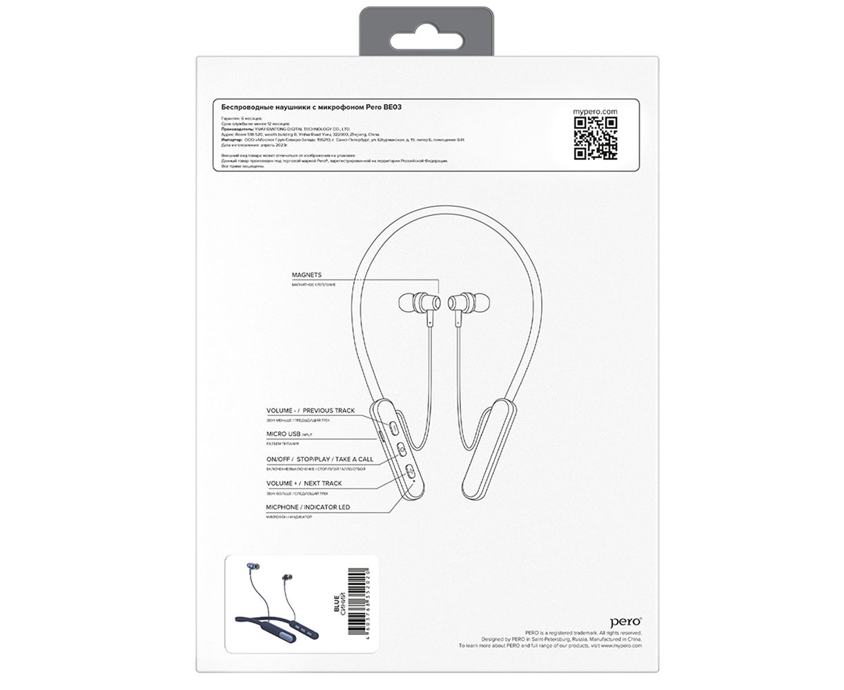 Спортивные беспроводные вакуумные наушники PERO BE03 с версией Bluetooth 5.3 и магнитным креплением прекрасно подойдут для активного образа жизни. Емкость аккумулятора: до 200 mAh. Время работы в режиме ожидания: до 130 часов. Разъем для зарядки: Micro USB. Цвет: синий.