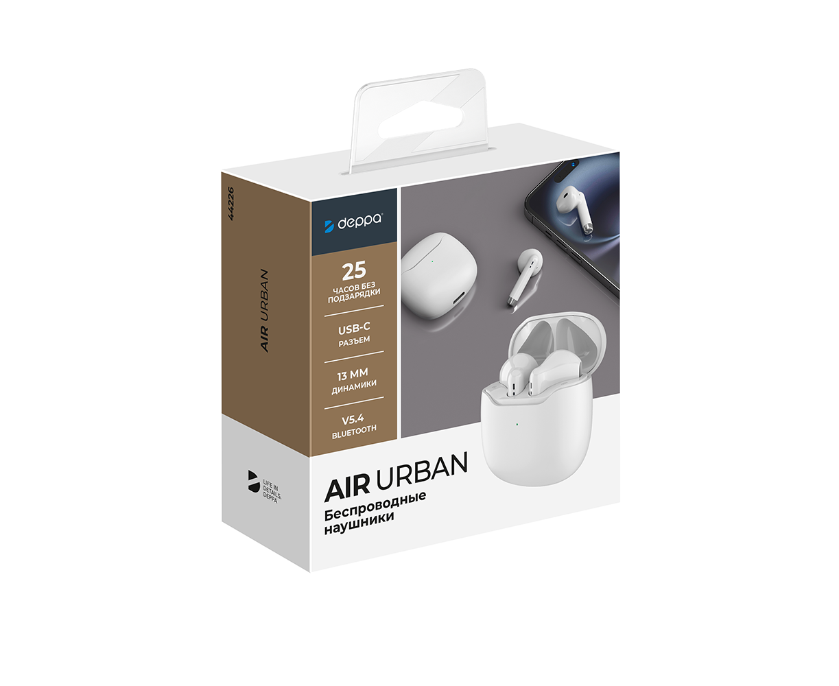 Беспроводные наушники с микрофоном Air Urban, TWS, BT 5.3, 320 мАч, белый, Deppa