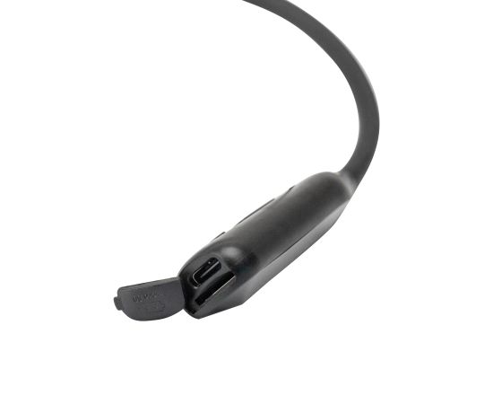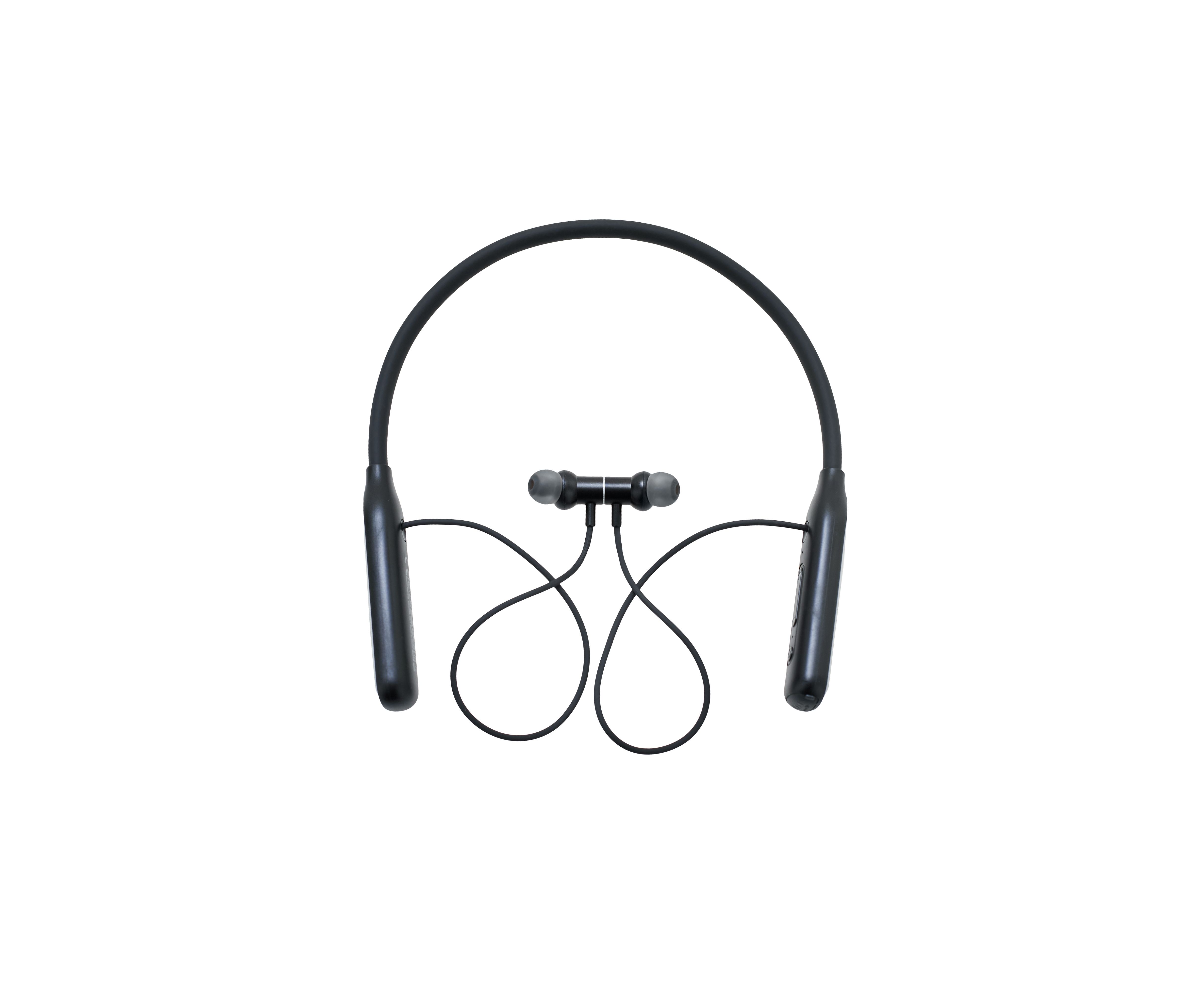 Беспроводные наушники с шейным ободом.
