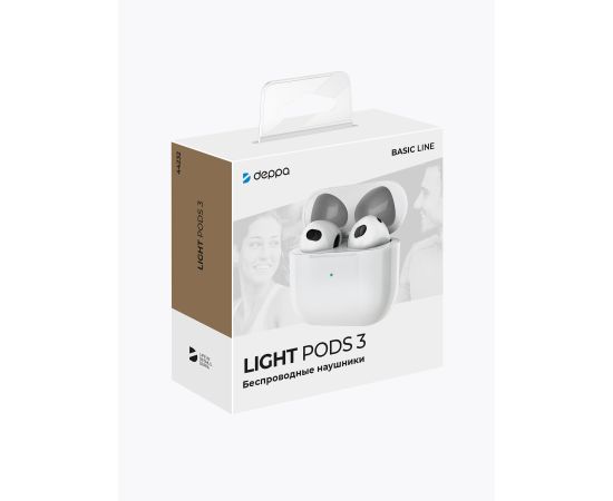 Беспроводные наушники с микрофоном Light Pods 3 , TWS, BT 5.4, 300 мАч, белый, Deppa
