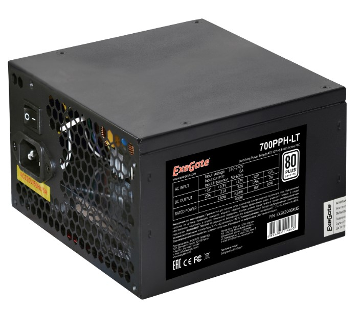 Блок питания Exegate EX282046RUS-OEM 650PPH-LT-OEM, 80+, ATX, black, APFC, 12cm, 24p, (4+4)p, 5xSATA, 3xIDE