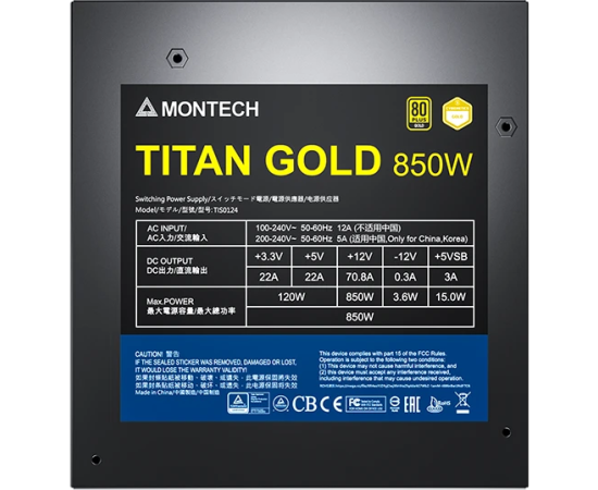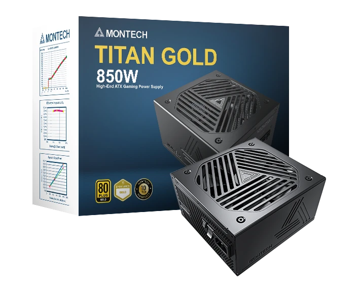 Блок питания Montech Titan Gold 850W / ATX 3.0, APFC, 80 Plus Gold, Half Bridge LLC, DC-DC, Japan caps, 135mm fan, full modular