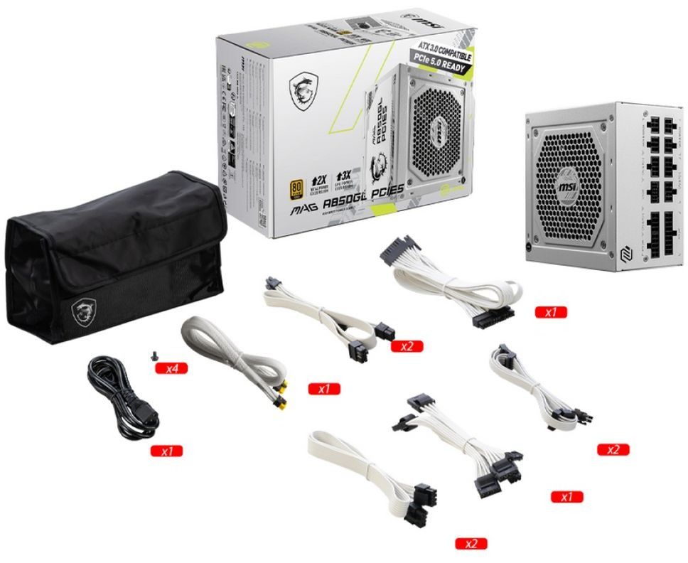 Блок питания MSI MAG A850GL PCIE5 White (306-7ZP8A24-CE0), 850W, 80+ Gold, полностью модульный, ATX 3.0, PCIE5, RTL