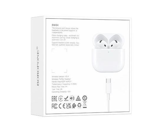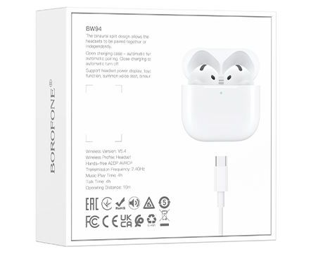 Блютуз гарнитура BOROFONE BW94/ Белый